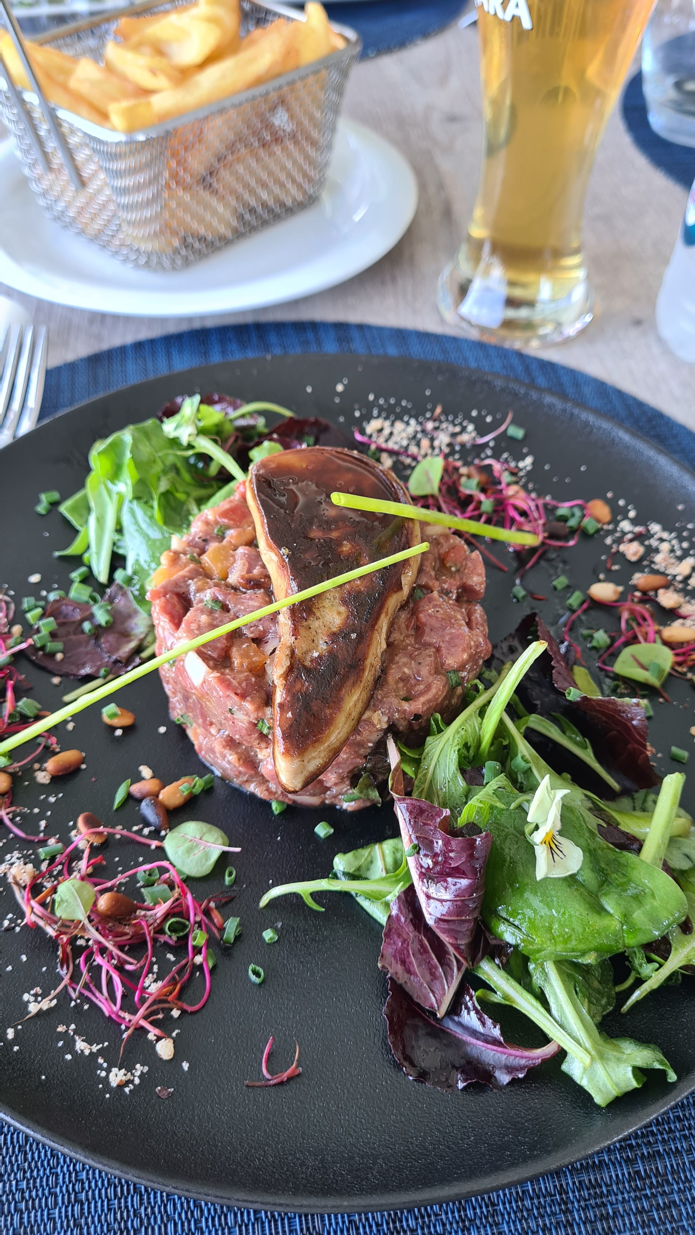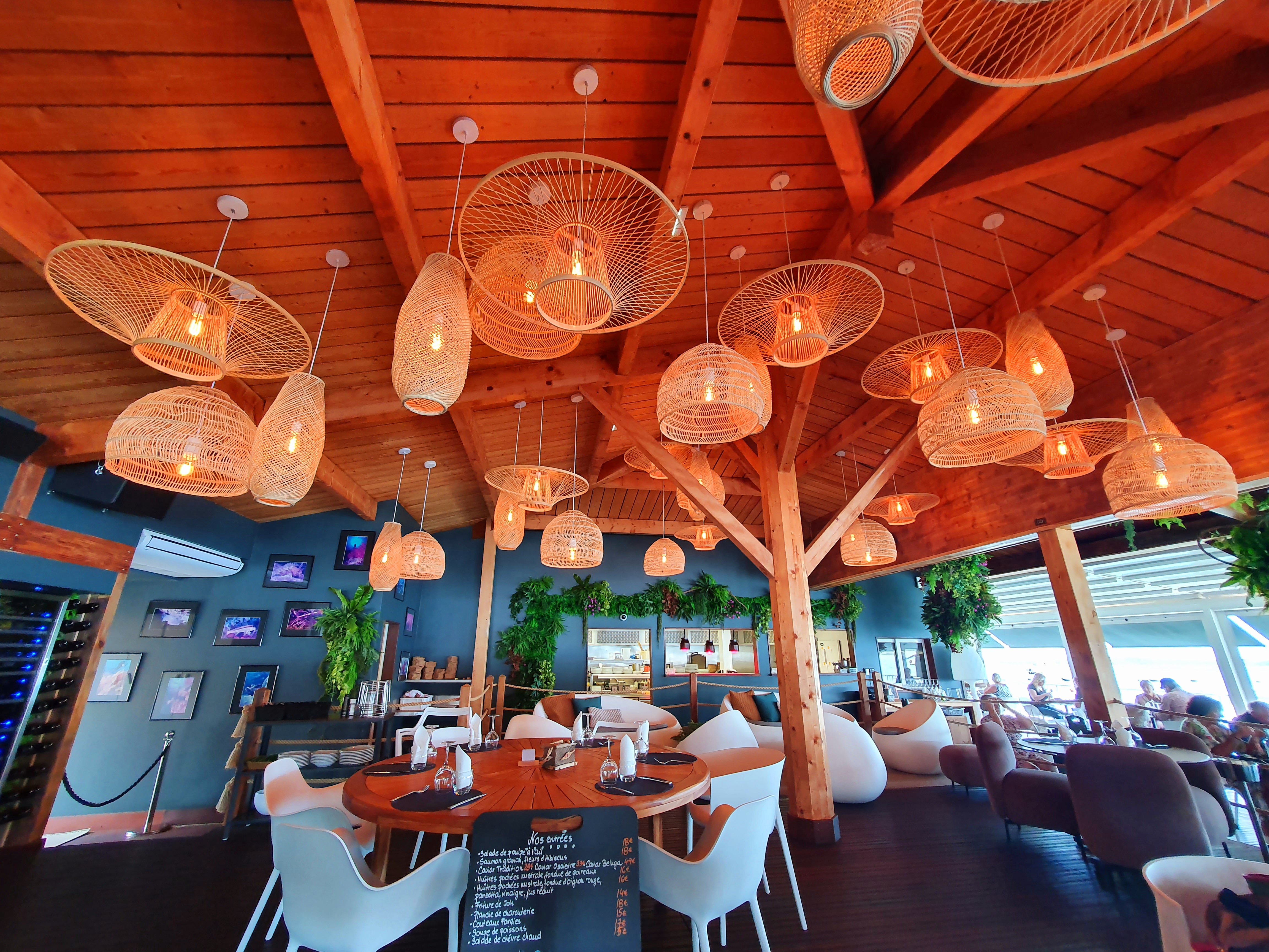 Un cadre magnifique pour ce restaurant sur pilotis.La lumière du jour décline petit à petit, nous laissant face à des nuances de bleu sublimes. Les fruits de mer et poissons y sont très frais et délicieux,je vous conseille de découvrir les huîtres locales ! Bref,un très bel établissement pour un dîner agréable.