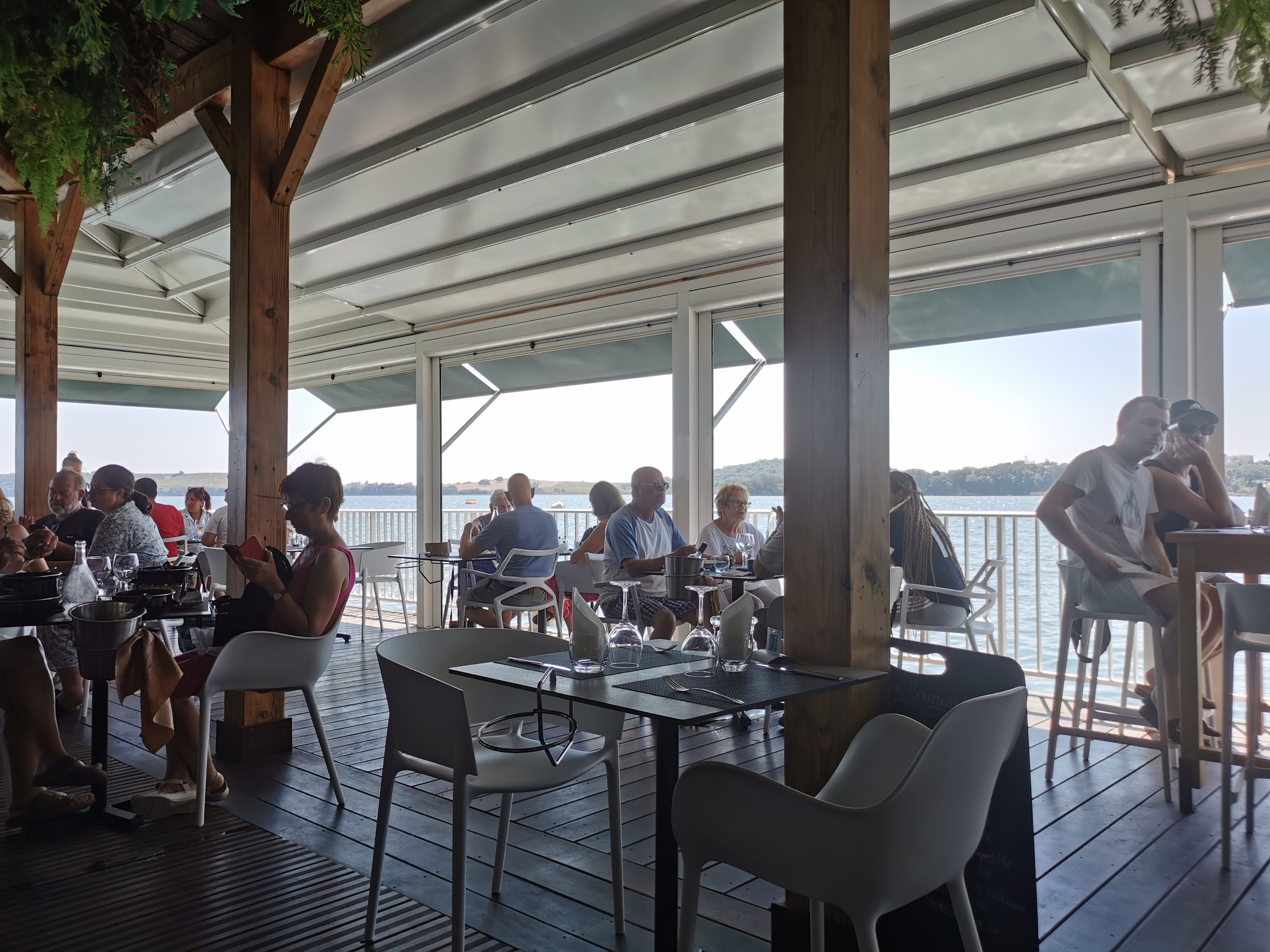 Magnifique adresse ! Restaurant au dessus du lac. Nous n'avons pas été déçu du choix de ce petit coin de paradis au bout d'une route étroite. Nous avons profité de l'extérieur éclairé par la lune en prenant sur le ponton un verre de vin blanc en attendant notre table. Magnifique expérience. Nous conseillons les huîtres crus et surtout les chaudes qui sont juste exquises. La décoration est très lounge et tendance. Excellent moment pour finir notre journée.