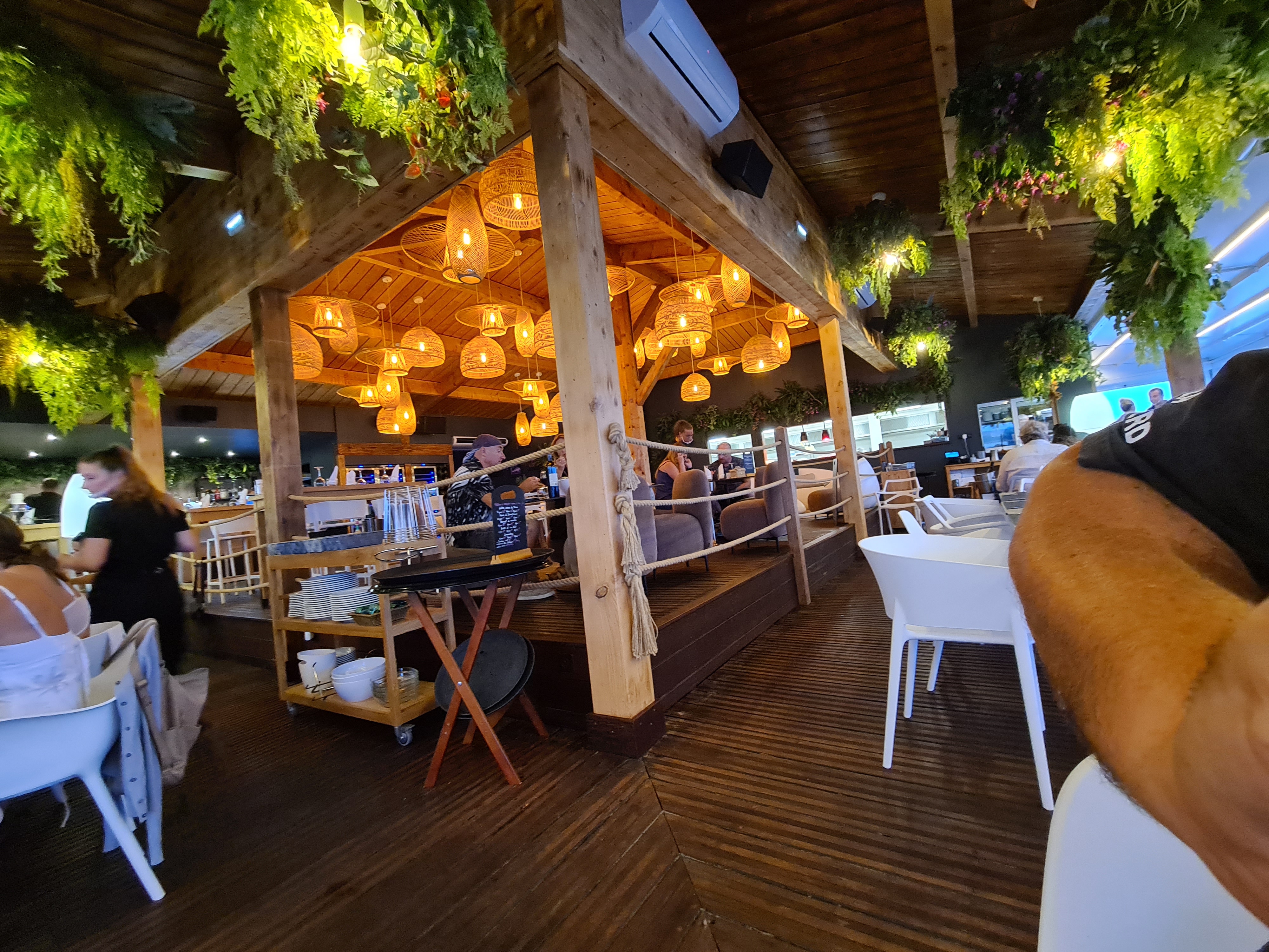 Restaurant original et très beau sur pilotis ! Plats de très bonne qualité ainsi qu’une équipe professionnelle ! Par contre petits budgets s’abstenir ! On y mange poissons, fruits de mer et crustacés, entrecôtes de bœufs, accompagnements légumes du jours, frites ..