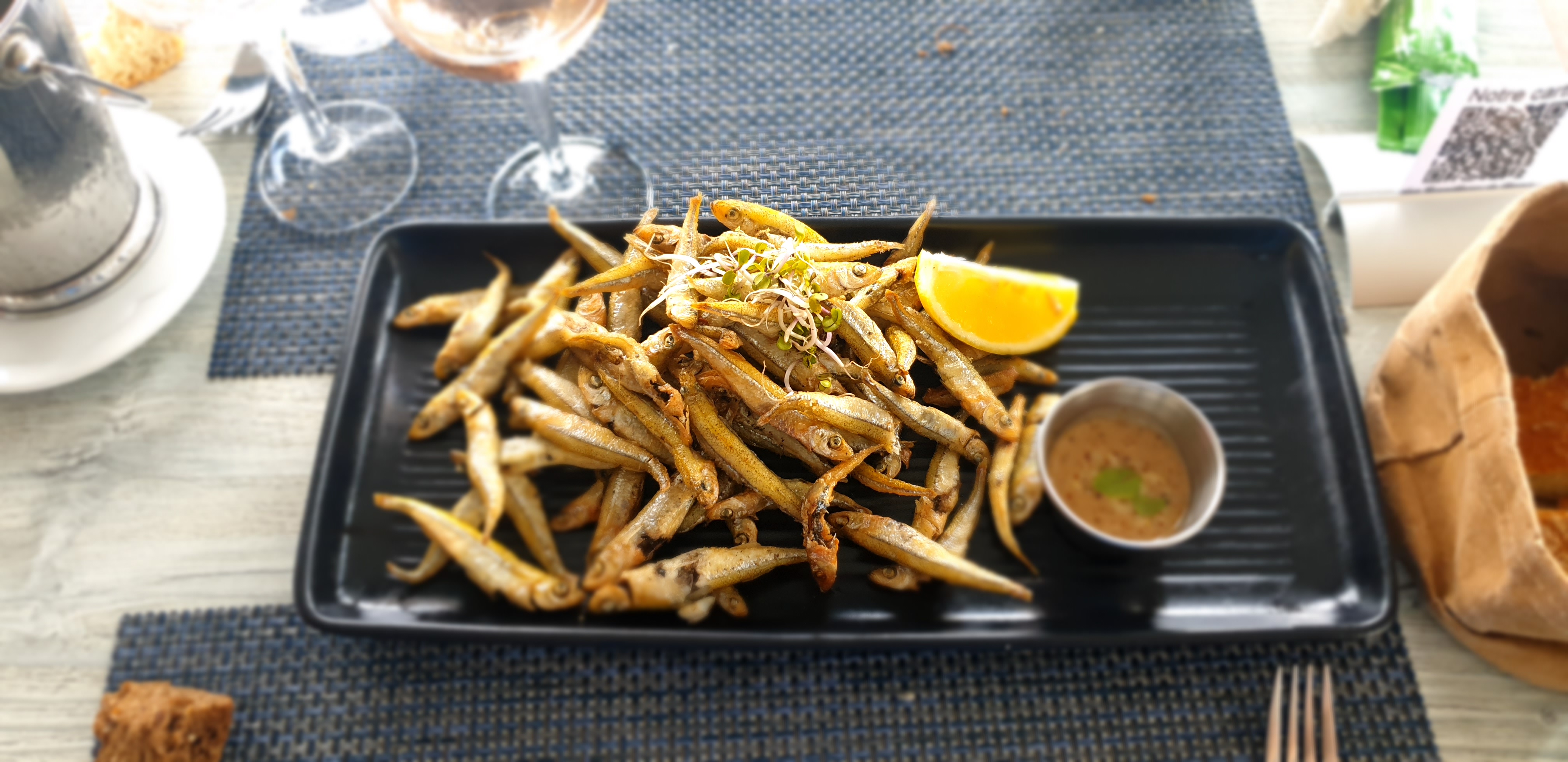 Que dire de plus, juste parfait. Dégustation d'un petit plateau de fruits de mer suivi fritures de jols, un délice; le tout servi avec un petit rosé de Corse. Service rapide, efficace et agréable. Sans oublier le cadre, sur l'eau avec ce petit vent qui vous berce, j'adhère et je recommande.