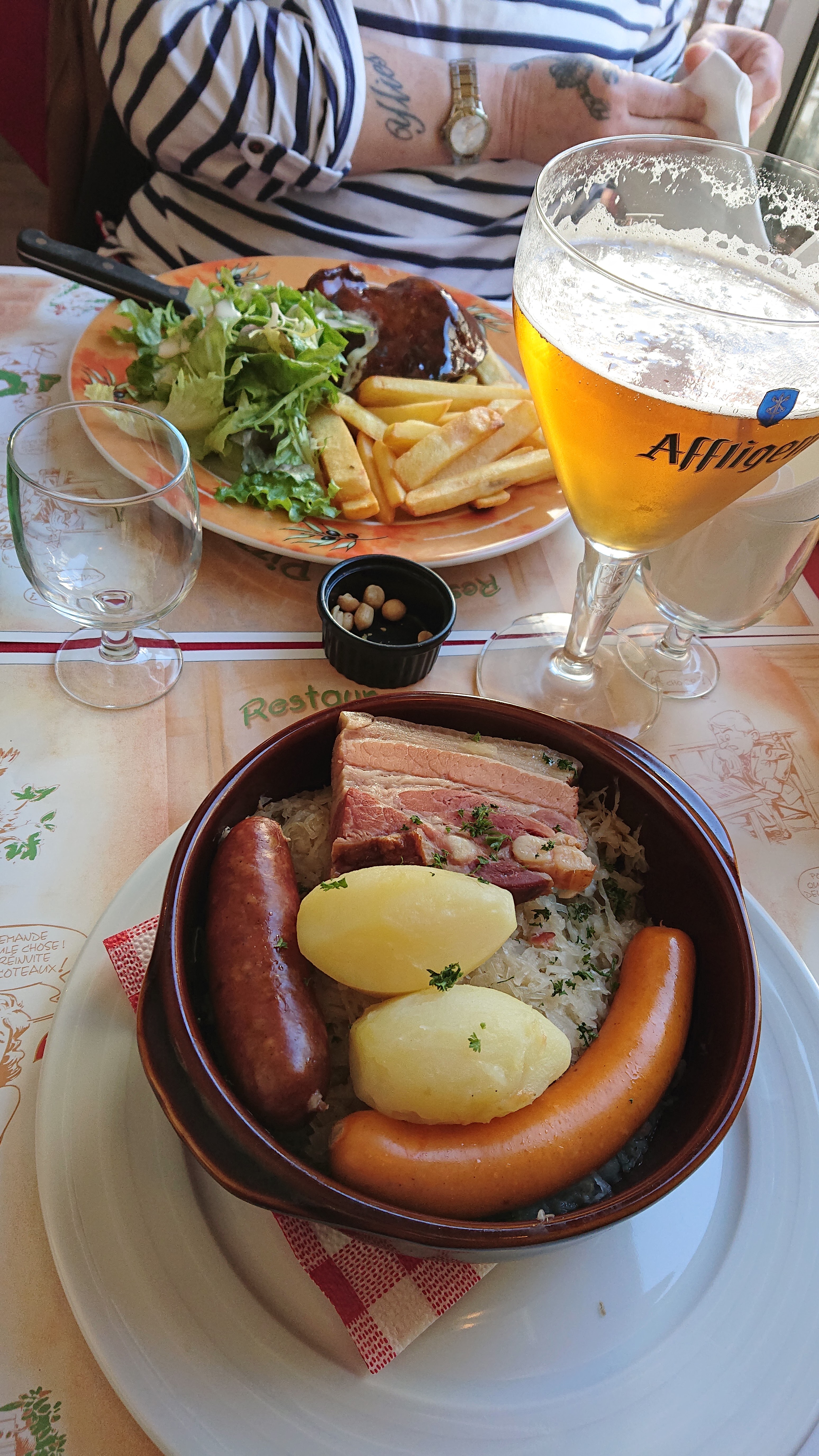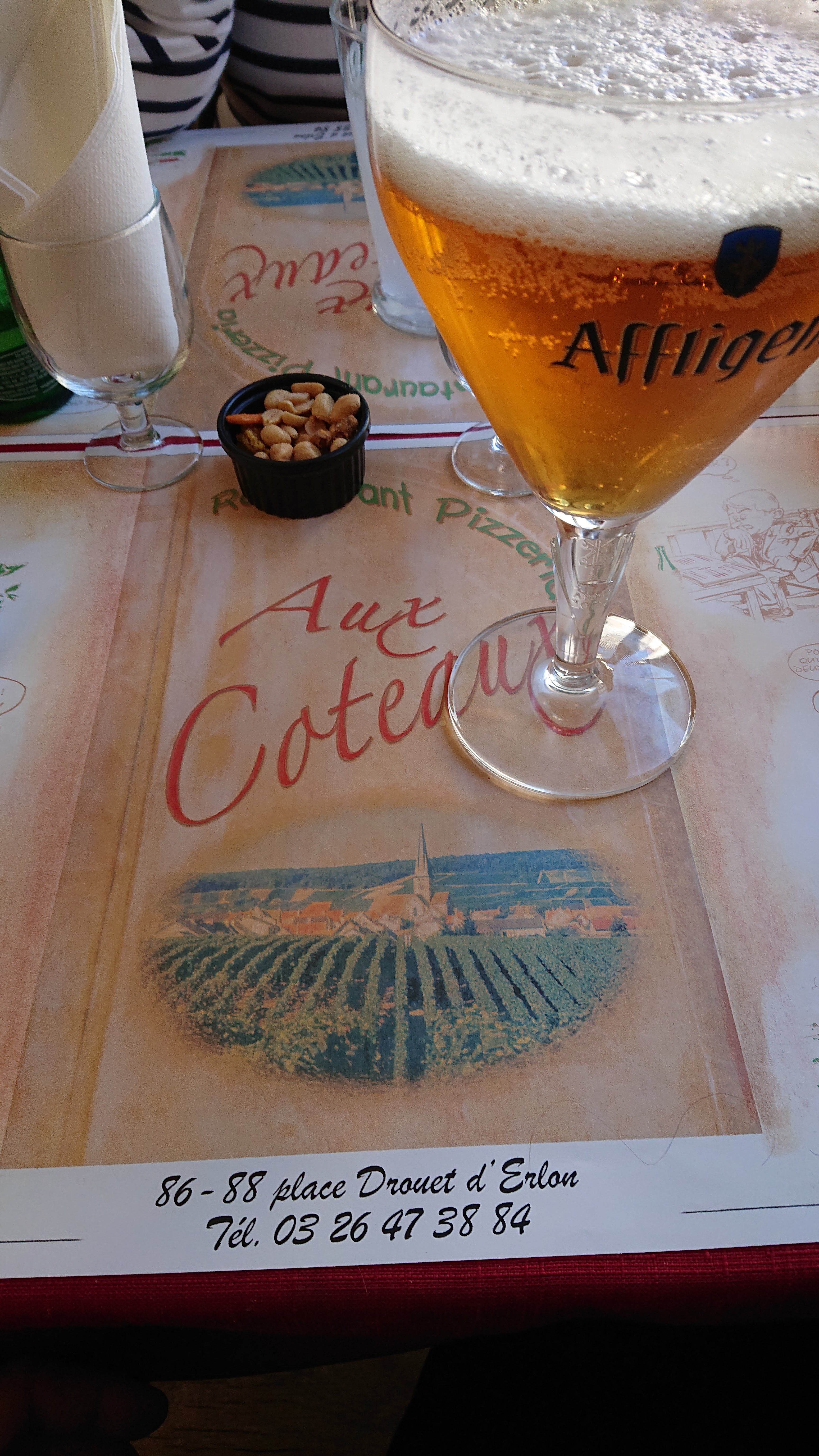 Restaurant type brasserie placé au cœur de la ville animée, propose une carte diversifiée entre pizzas (certaines originales), pâtes, salades, andouillette 5A, viandes,….et un certain nombre de plats du jour (hier parmi une dizaine de possibilités, un Potjevleesch, bien servi pour 12,50€). Une carte des vins honorable avec du vin au verre très abordable. Une offre de champagne tout à fait correcte. Terrasse extérieure couverte. Ambiance familiale, un peu surannée comme l’aménagement et la déco. Des tarifs très contenus en cette période où l’on a du mal à trouver un plat en dessous de 20€ et des desserts à moins de 10€. Cela fait du bien !