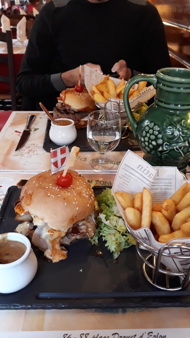 Pas vraiment fabuleux, mais c’est passable. L’île flottante était vraiment trop sucrée et le hamburger trop salé.