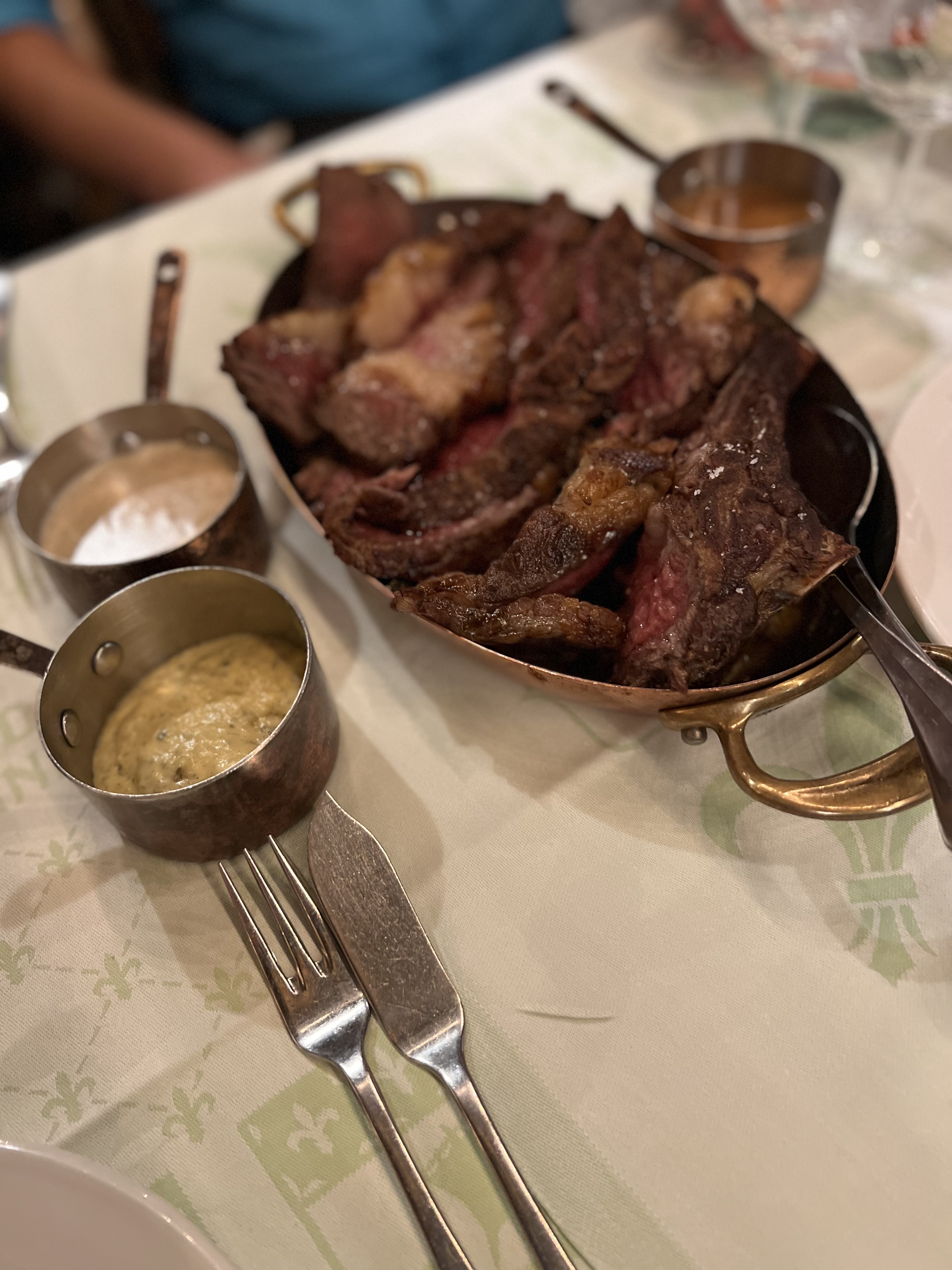 Cadre très jolie une vrai belle affaire comme on les aimes Malheureusement, Les prix sont excessifs ceci aurait pu être effacé par une bonne assiette mais ce n’est même pas le cas La sauce aux champignons est insipide La béarnaise est servi froide La viande est tendre mais n’a pas de saveur Concernant le service, L’accueil n’est pas vraiment chaleureux La prise de dessert se fait en même temps que les entrées ceci ne pourrait ne pas me poser de problèmes dans la mesure où les cuisines seraient sur le point de fermer mais il était 21h30.. Le responsable de salle ne lève pas le nez de son téléphone et préfère goûter des vins plutôt que de venir donner un coup de main au personnel de salle Les vins sont bon mais sans grande surprise Bilan de l’opération très chère pour une qualité de cuisine et un service si moyen mais à demi mot excusable par la beauté du lieu