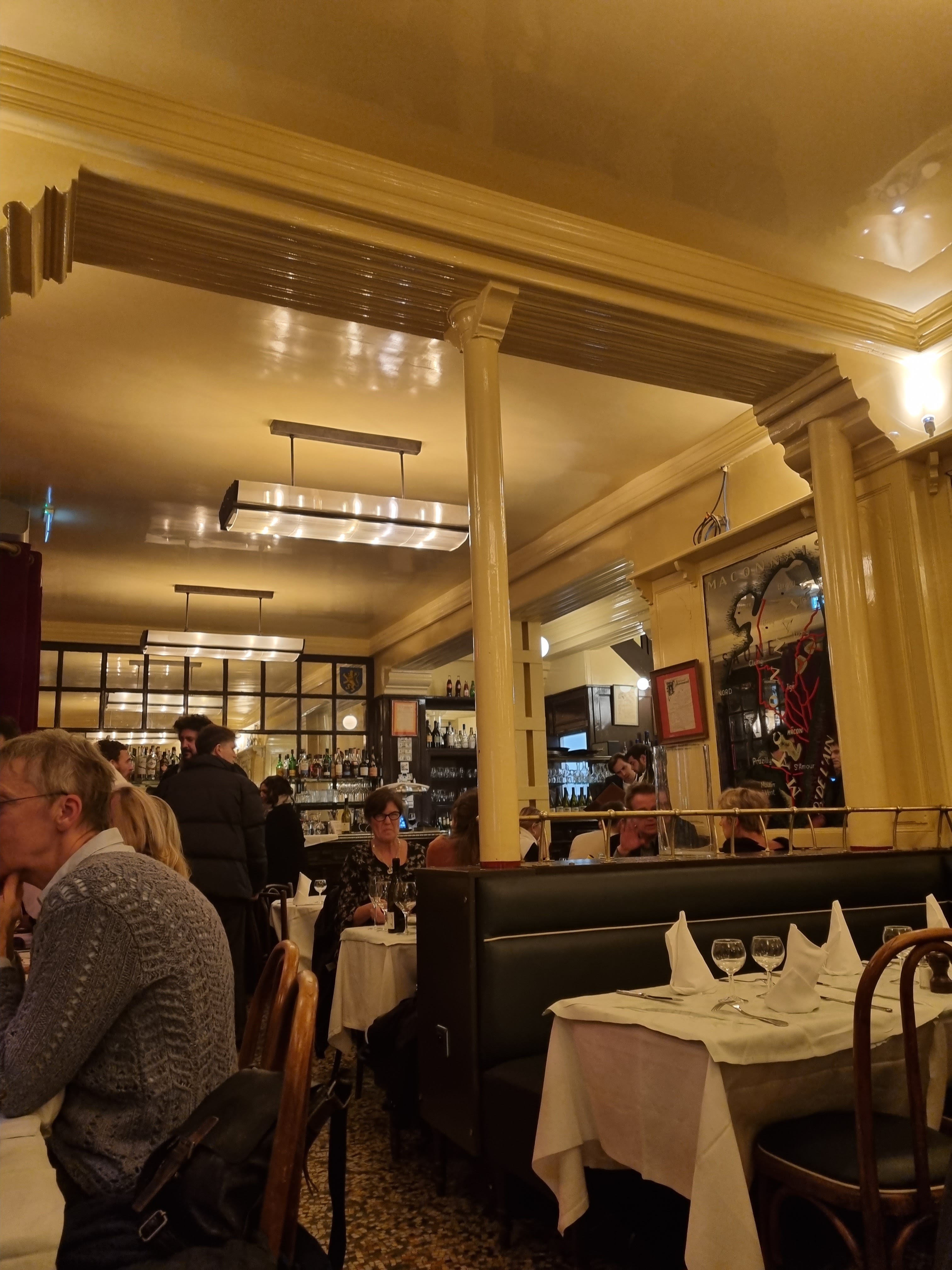 Un bon classique Français, aux nappes blanches épaisses, avec des escargots bien beurrés et aillés pour gicler avec gourmandise sur la meme nappe, agrémentés de bonnes bouteilles de Bourgogne (et ouais), de bons plats tradis dans une ambiance ou l'on aurait croisé Clemenceau, Gabin, Barthou, Edgar Faure ou Lino Ventura. Faut surtout rien changer.