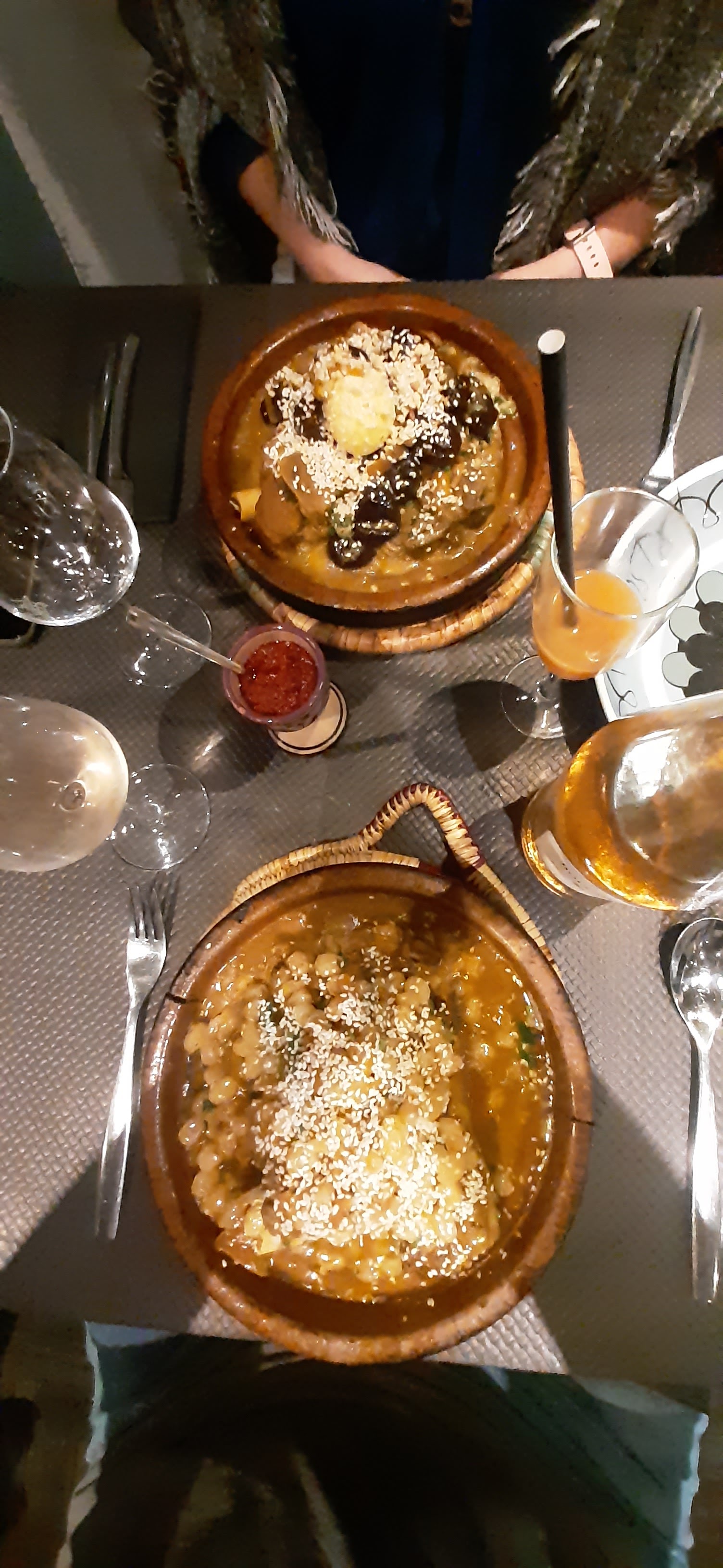Première fois que nous y allions avec mon épouse ; nous étions avec des amis qui connaissaient bien toute l’équipe. Nous y avons été très bien reçu et la cuisine excellente ; pour moi Tajine d’agneau hummm j’en redemande et pour terminer un très bon thé menthe.