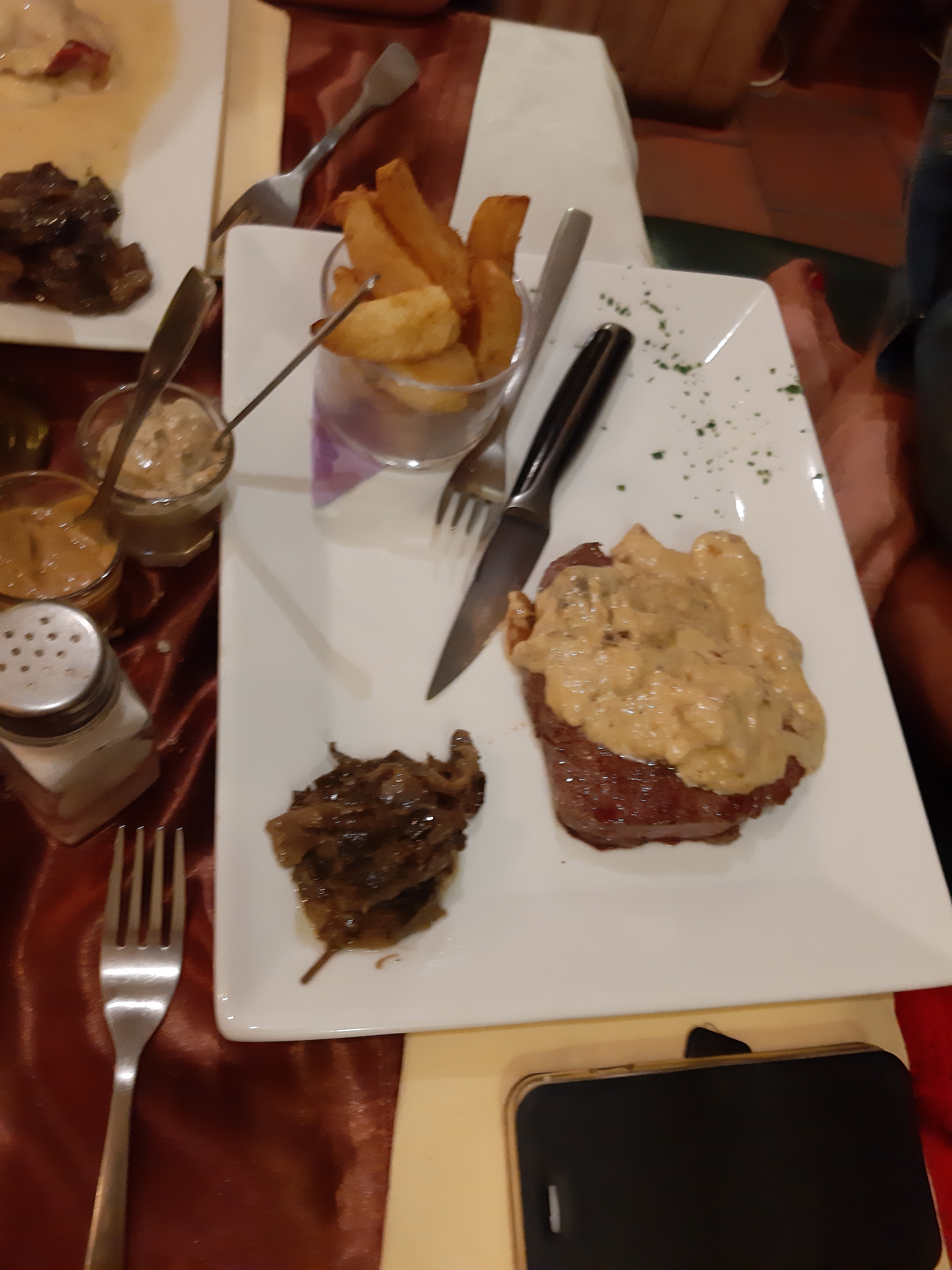 Le service était très gentil et familier. Une partie de la nourriture avait l'impression d'être presque là. La sauce au poivre laisse un peu à désirer