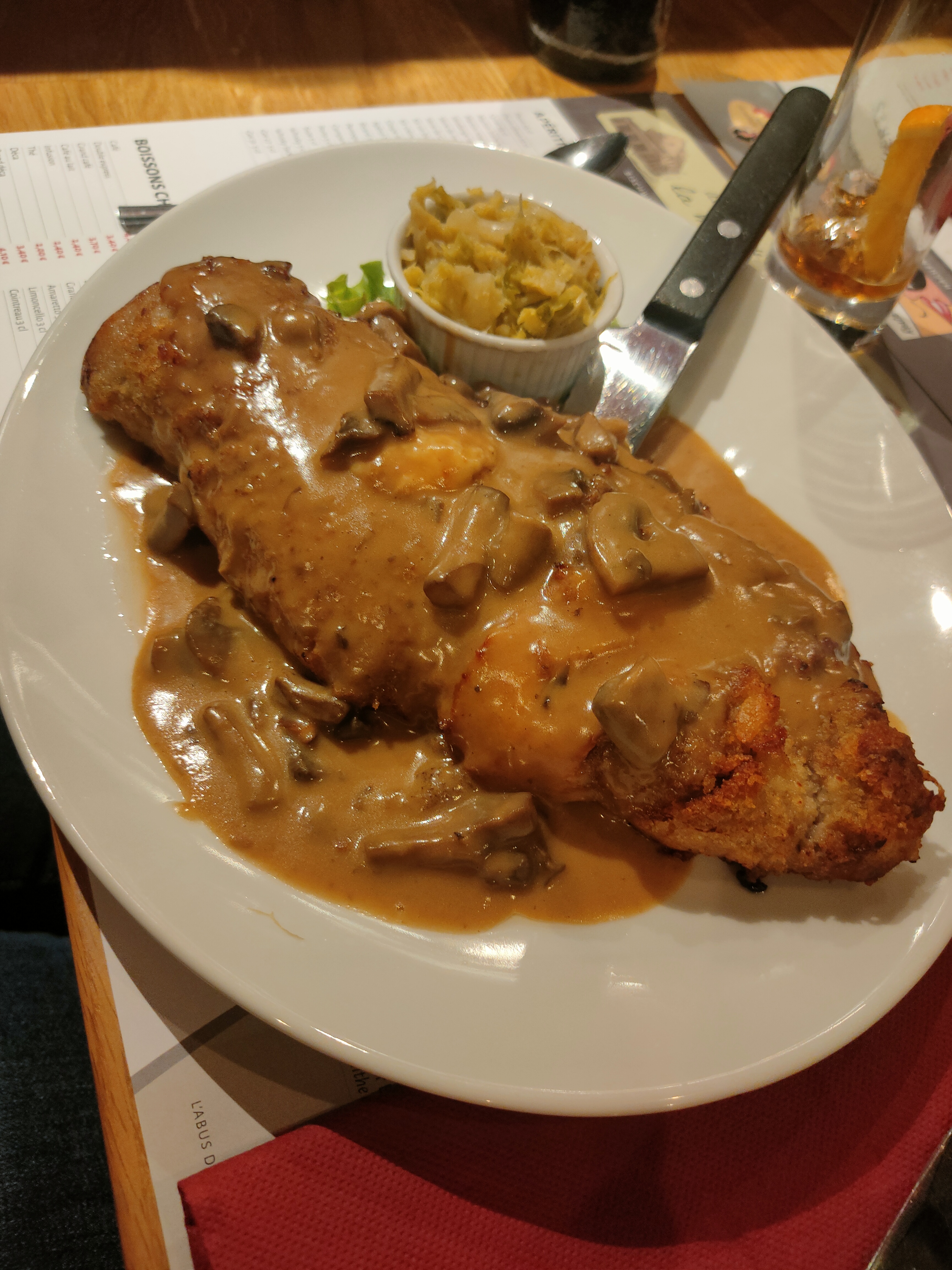 Franchement épatant le cordon bleu et sa sauce girolles succulent bravo au cuisinier ou cuisinière service agréable et sourient au petit soins bravo l'équipe