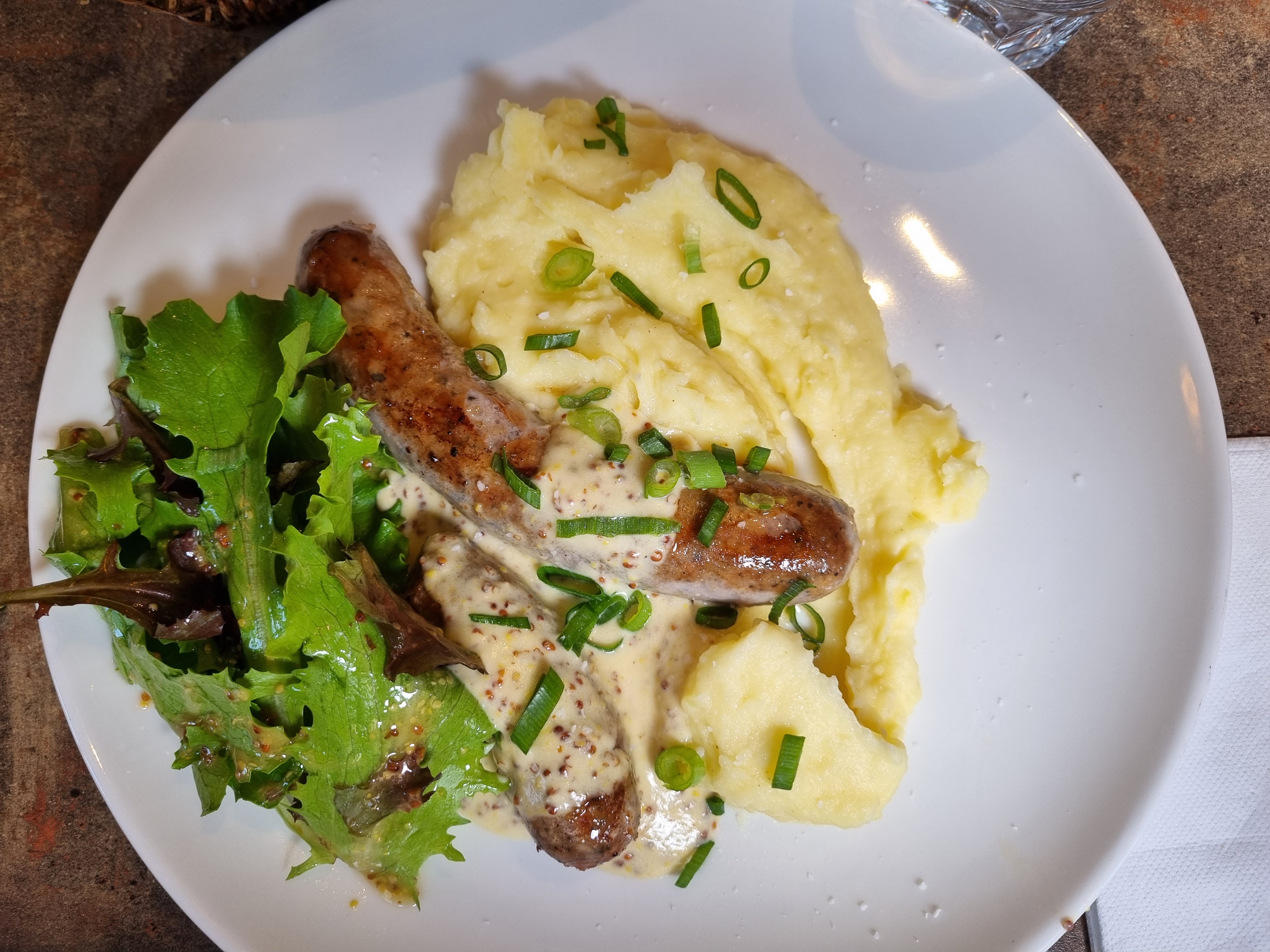 Ambiance très sympa, pas de débat! Mais pour 19€ .. 2 petits morceaux de poulet dans 100 g de purée! Vraiment trés dommage, j’ai cru a une blague! Et quand - armée de courage car je déteste faire ce genre de réflexion - j’ai souligné ce fait et demandé une assiette de fritte payante, ils m’ont expliqué qu’il ne restait pas assez de fritte! Bref