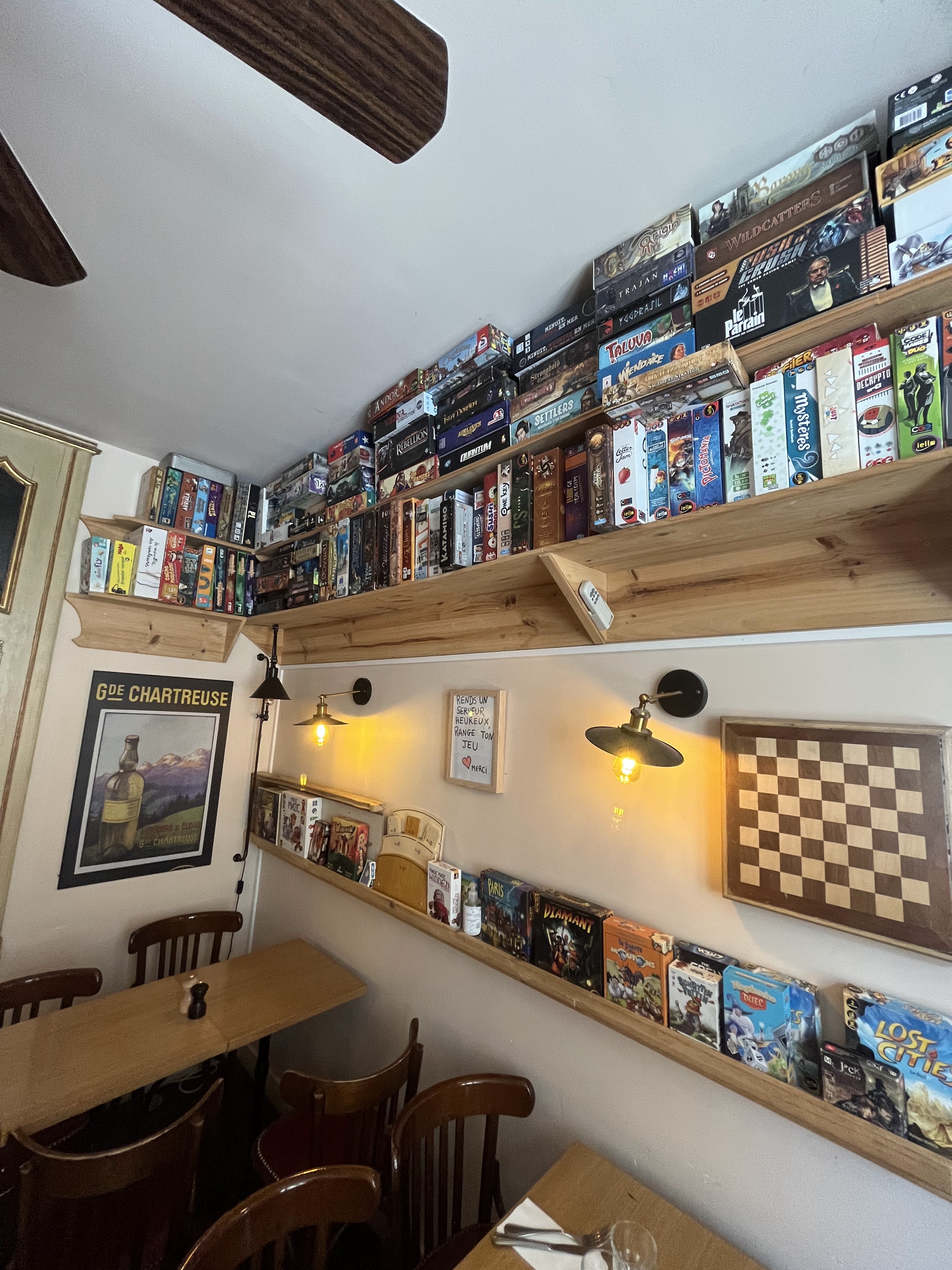 J'ai passez une bonne soirée dans l'unique lieu du 17eme où l'on peut manger et jouer à des jeux de société! Il y a grosse diversité de jeux mais leurs emplacements sont plutôt contraignant. Venu le jeudi 30 septembre 2021 à 19h.