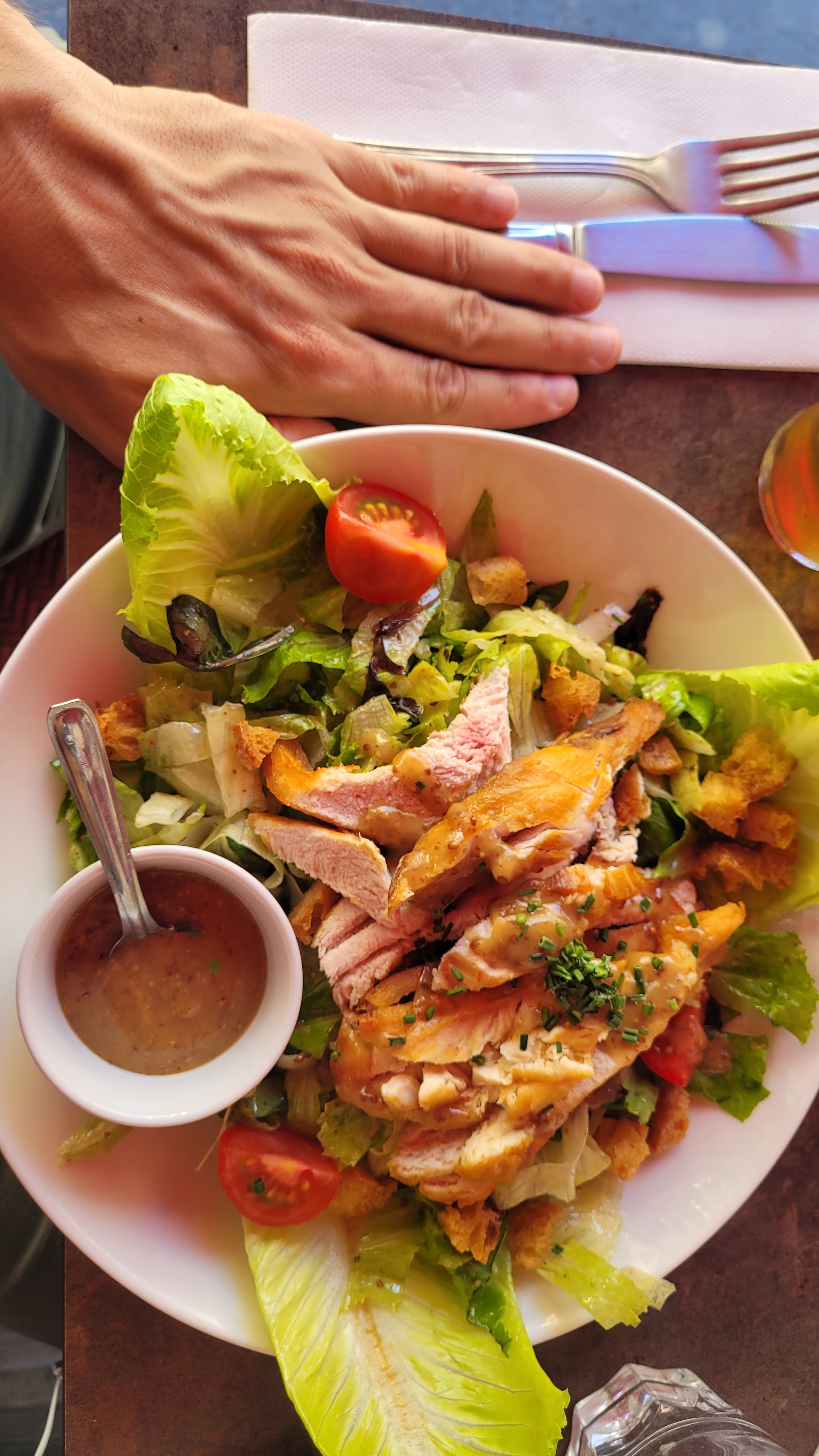 Cuisine encore ouverte après 15h, la chance ! Ils ont accepté de m'enlever le parmesan et de changer ma sauce césar en sauce vinaigrette, portion généreuse et c'était bon !