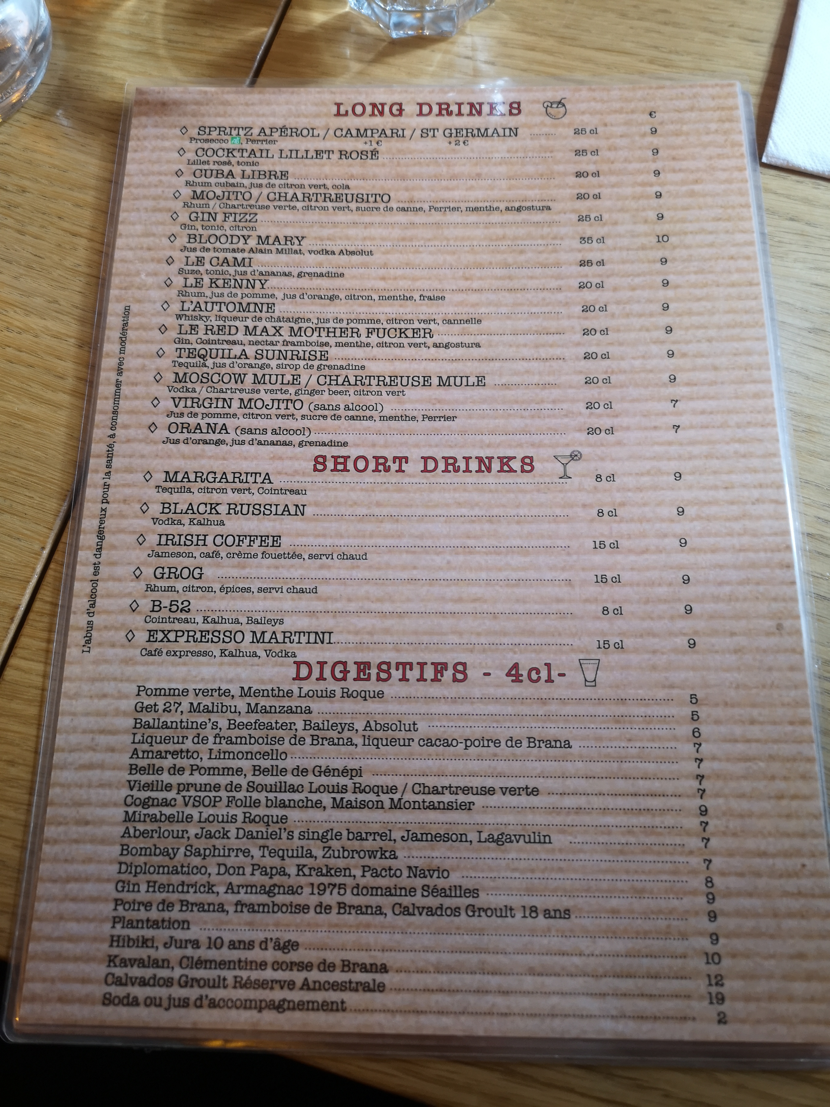 - ✔️ Cocktails et apéritifs