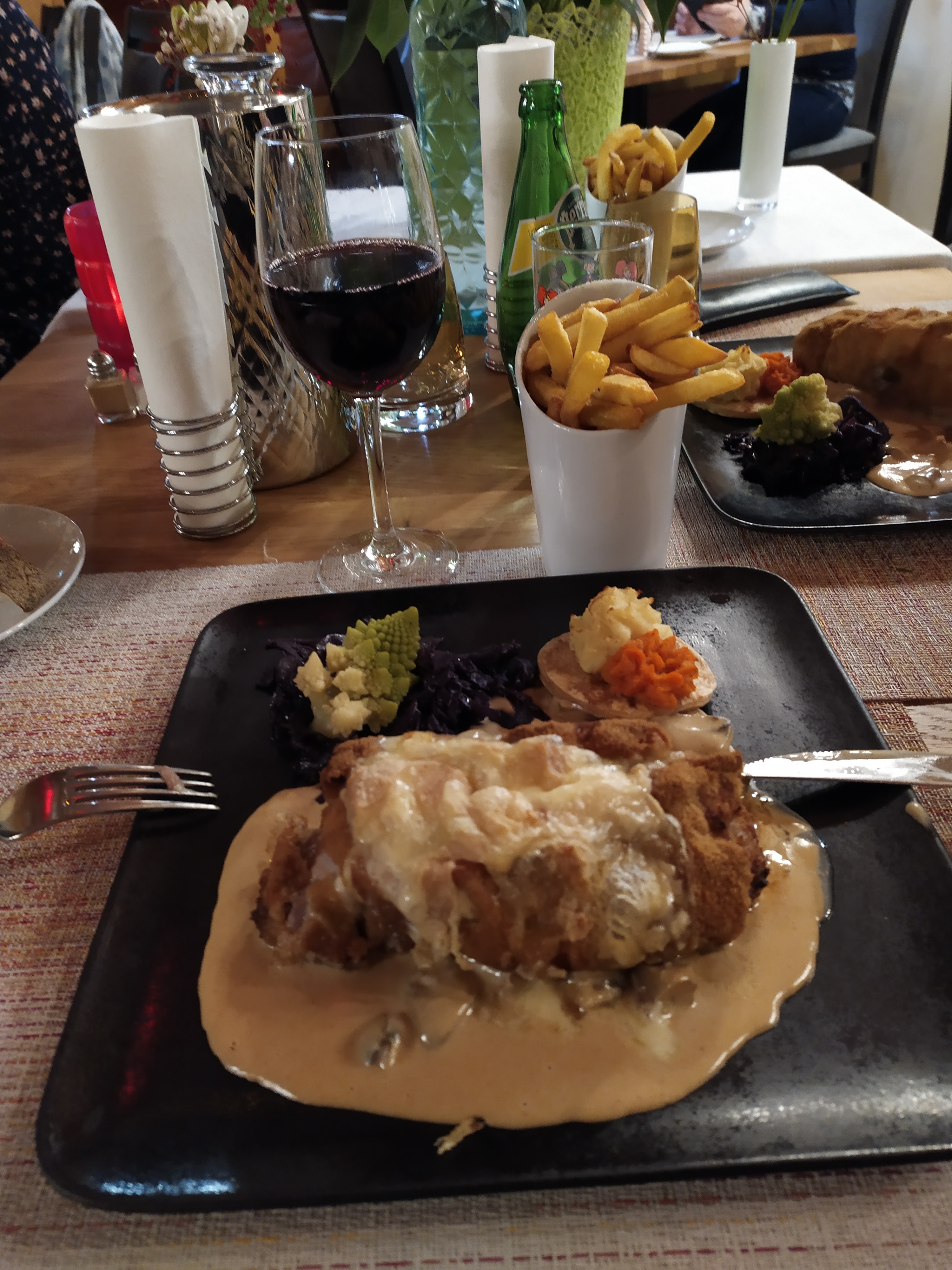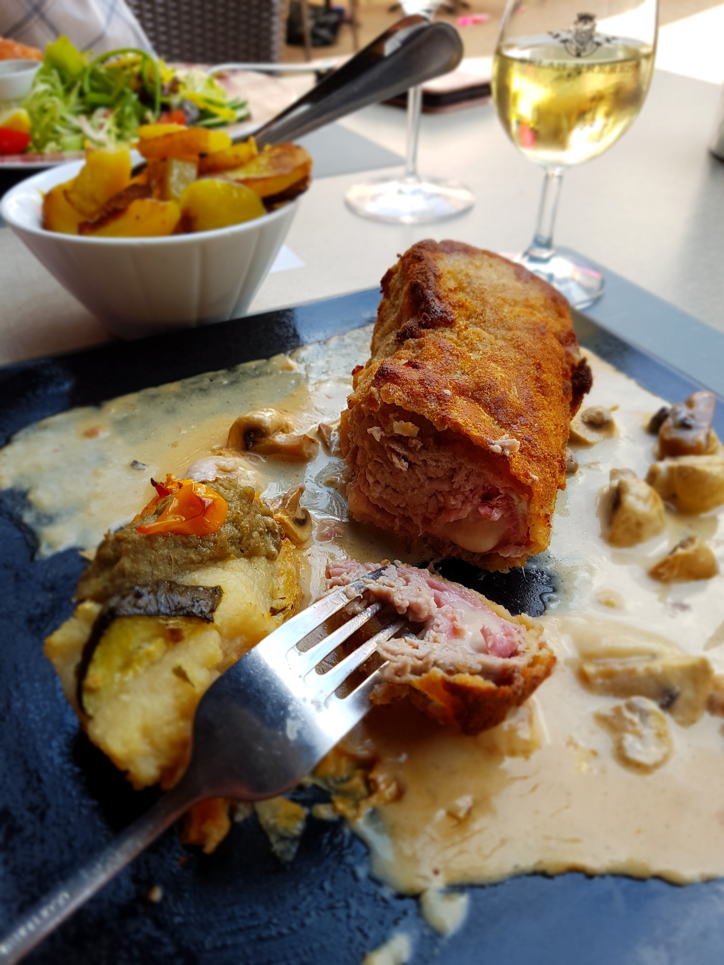 Le traditionel cordon bleu munster... une tuerie... Je le mange qu'à cet adresse. Une terrasse magnifique, à essayer. Vous le regretterez pas.