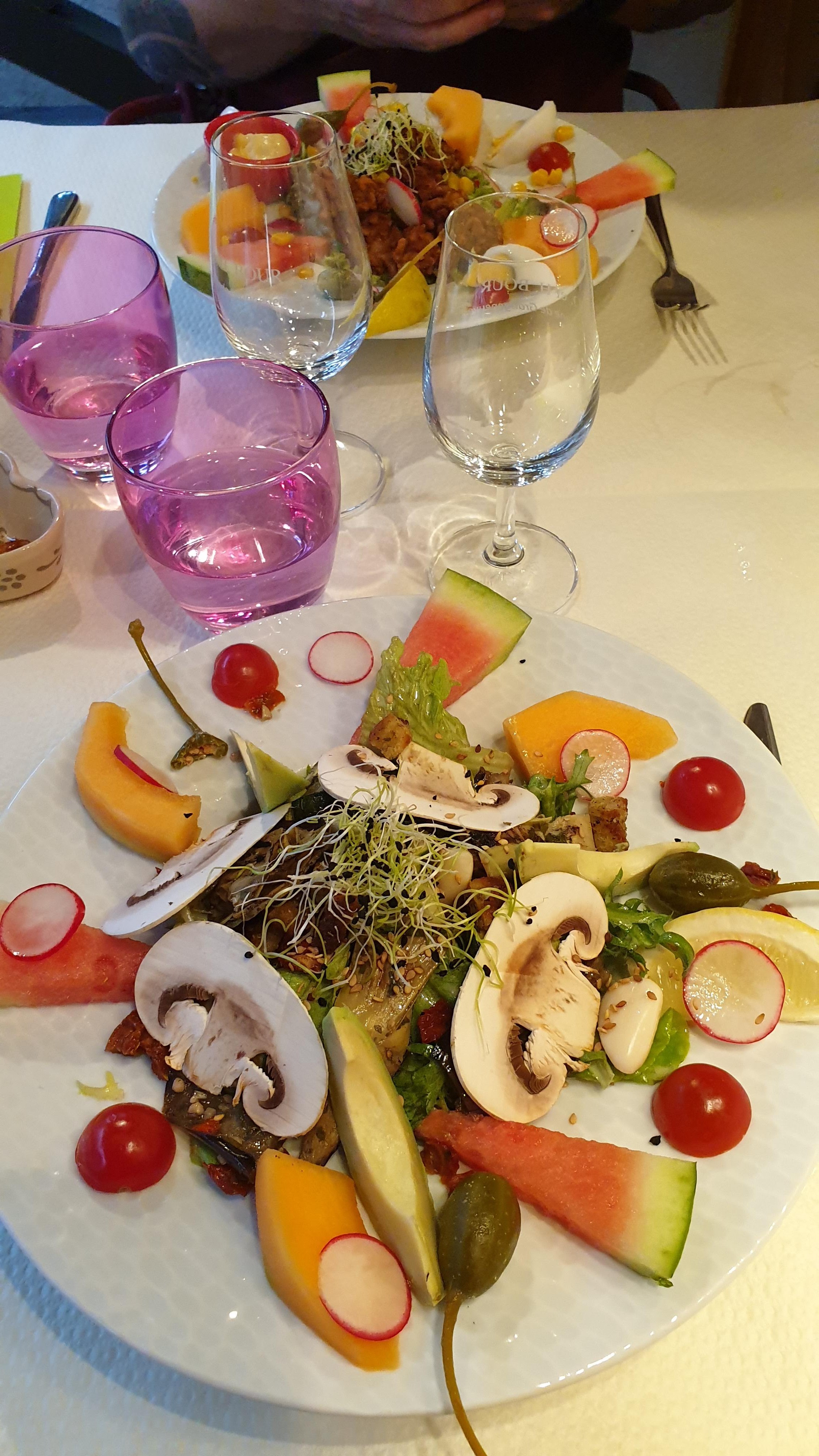 Délicieux de l'entrée au dessert. Belle terrasse. Nous avons goûté de la sangria alsacienne, délicieux, merci pour la recette.