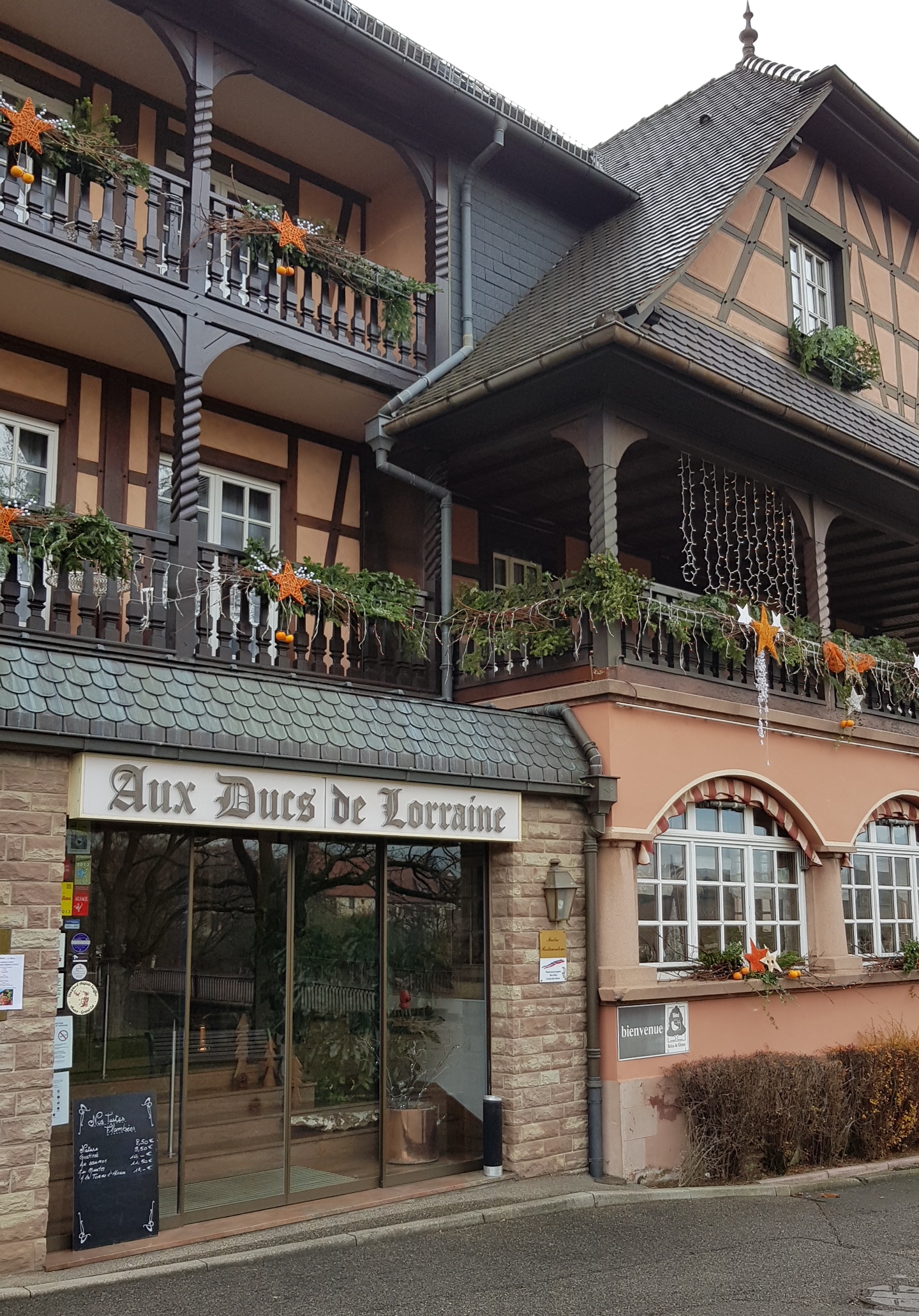l'acceuil très chaleureux, la façade de l'hotel bien fleurie ,les chambres un peu vieux style .par contre la choucroute et sont accompagnement est à déconseillé (pas de gout !!!et pour ce qui est de l'accompagnement pas digne de l'Alsace on met de la knack une rondelle de cervelas et peu de lard ?? surtout pour une royale et sa pour 34.50€ pour 2 personnes !!il y a mieux et pour moins chère .