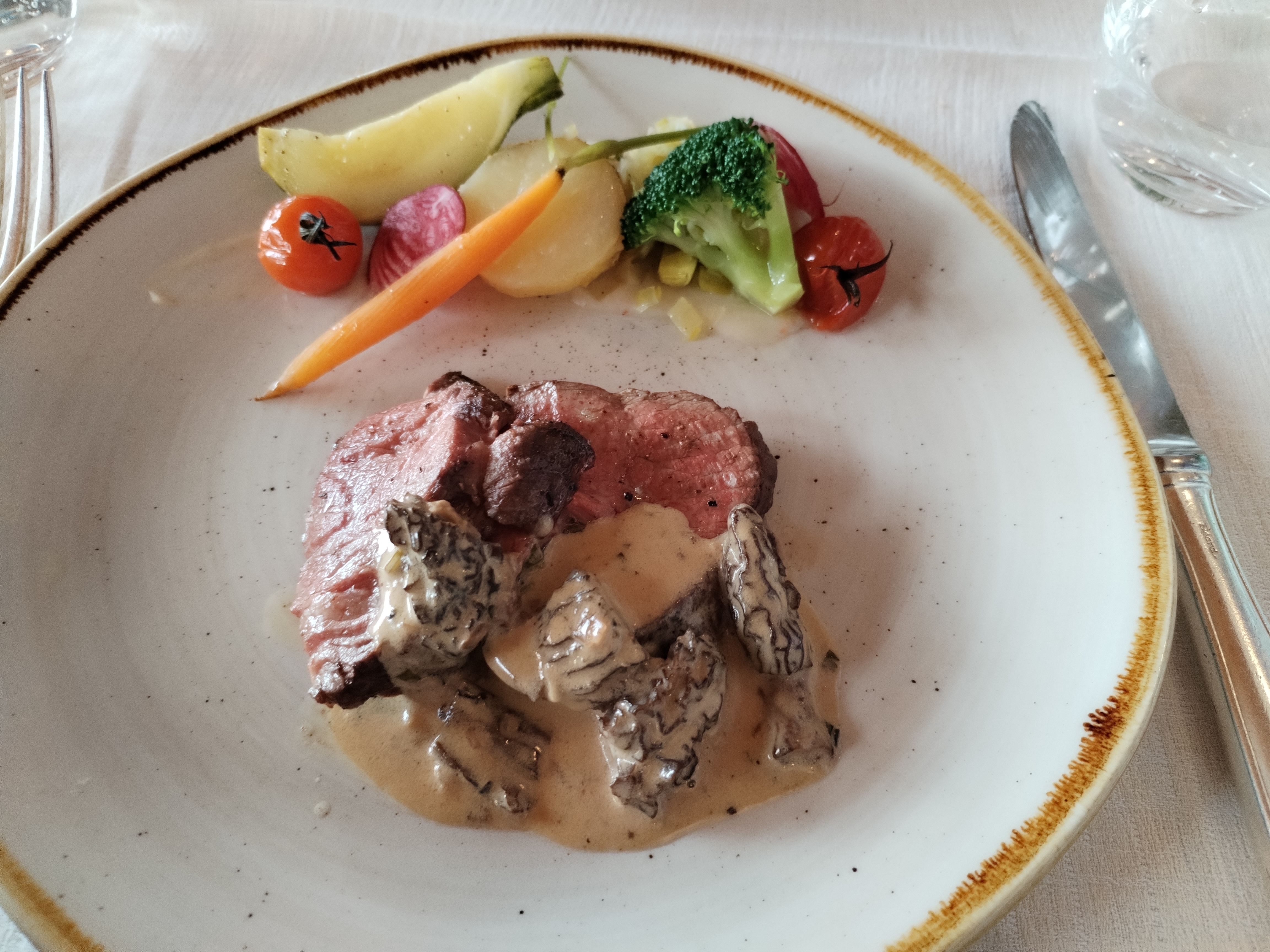 Rapport qualité prix remarquable. Petits amuse gueule offert à l'apéritif. Mise en bouche délicieuse. Au menu ou à la carte tout est délicieux. Très fin, fait maison. Poisson ou viande, le choix est grand. Le gratin d'écrevisses vaut le détour et que dire du mignon de veau. Le chariot de desserts un vrai délice. Ça m'étonnerait que vous ne soyez pas enthousiasmés