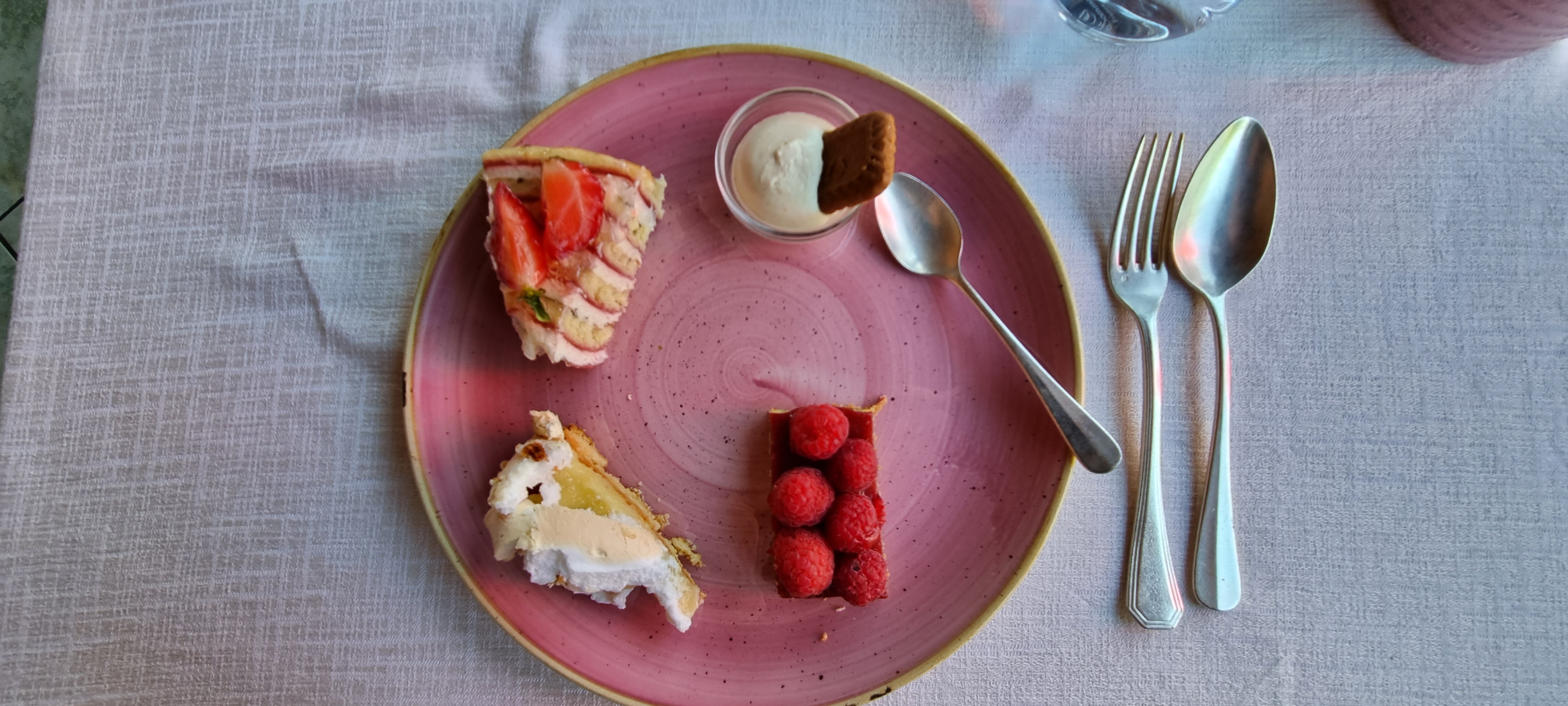 Bonne adresse avec 2 splendides chariots de fromages et desserts