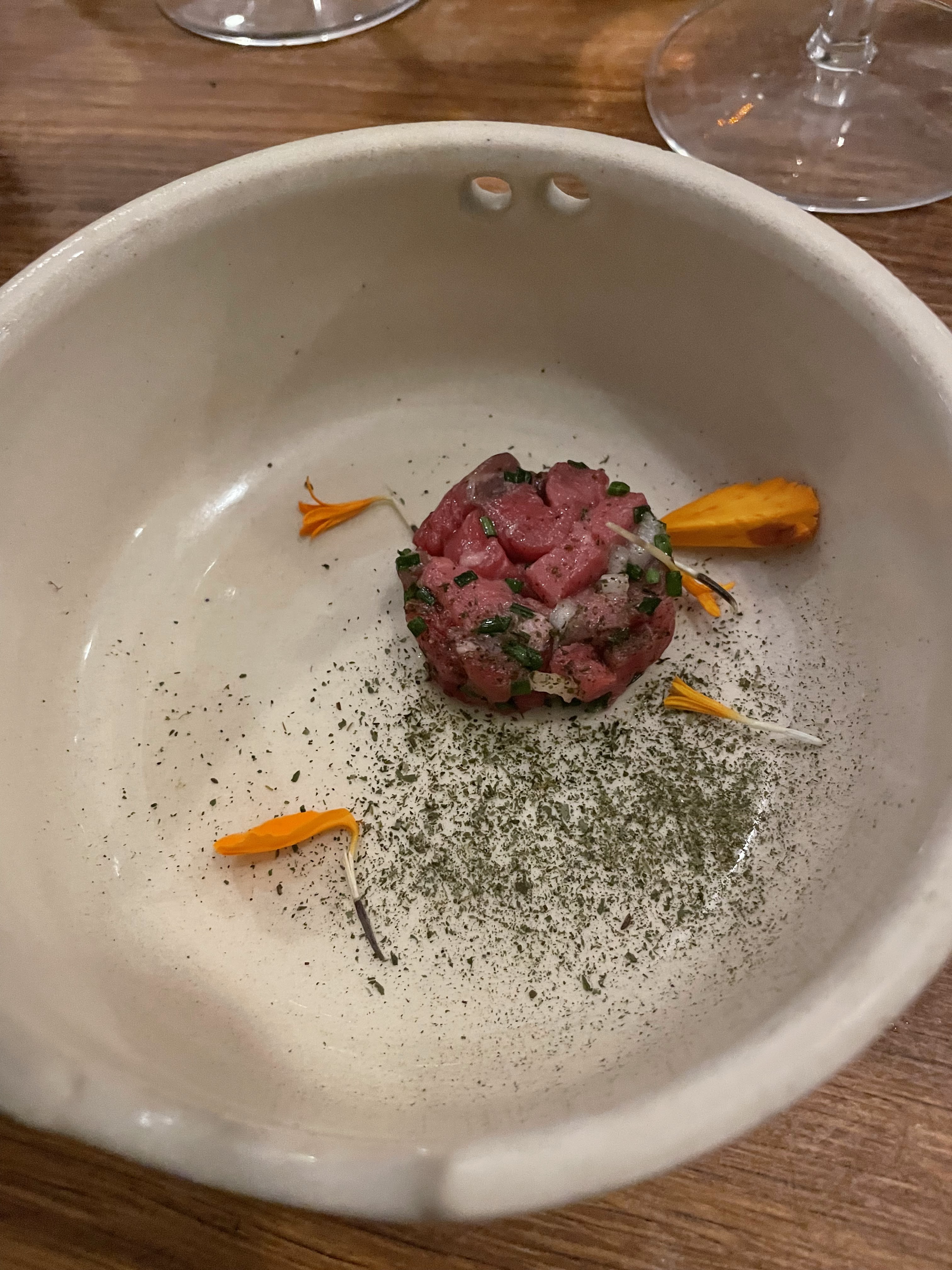 Toujours aussi excellent. Nous avons testé la formule unique du soir les yeux fermés. La possibilité d'adapter si intolérance, allergie ou question de goût, les conseils et l'accord mets et vins, des plats toujours aussi à la fois simples, raffinés, des cuissons basse température ou oeuf parfait toujours aussi bien maîtrisées, avec un accord parfait des condiments, sauces et autres épices surprenantes. Bref, toujours aussi Ephérites! NB: les photos datent d'une précédente visite. Ce soir, les ardoises étaient vides pour garder la surprise du menu.