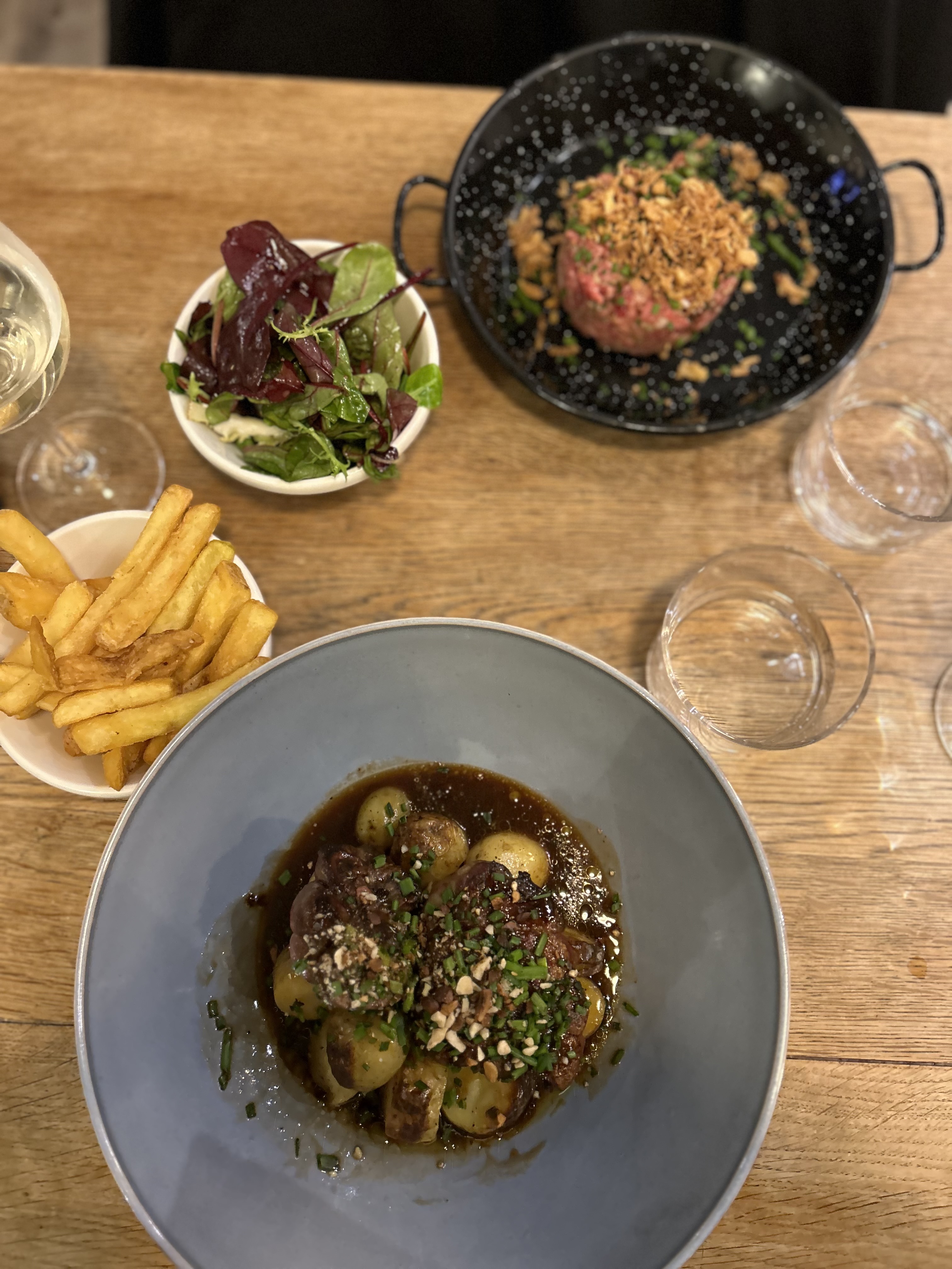 Repas délicieux ! Pièce de bœuf et tartare parfaits. Ambiance bistrot parisien, musique apaisante. Un très bon moment en toute simplicité…je recommande la terrine en entrée.