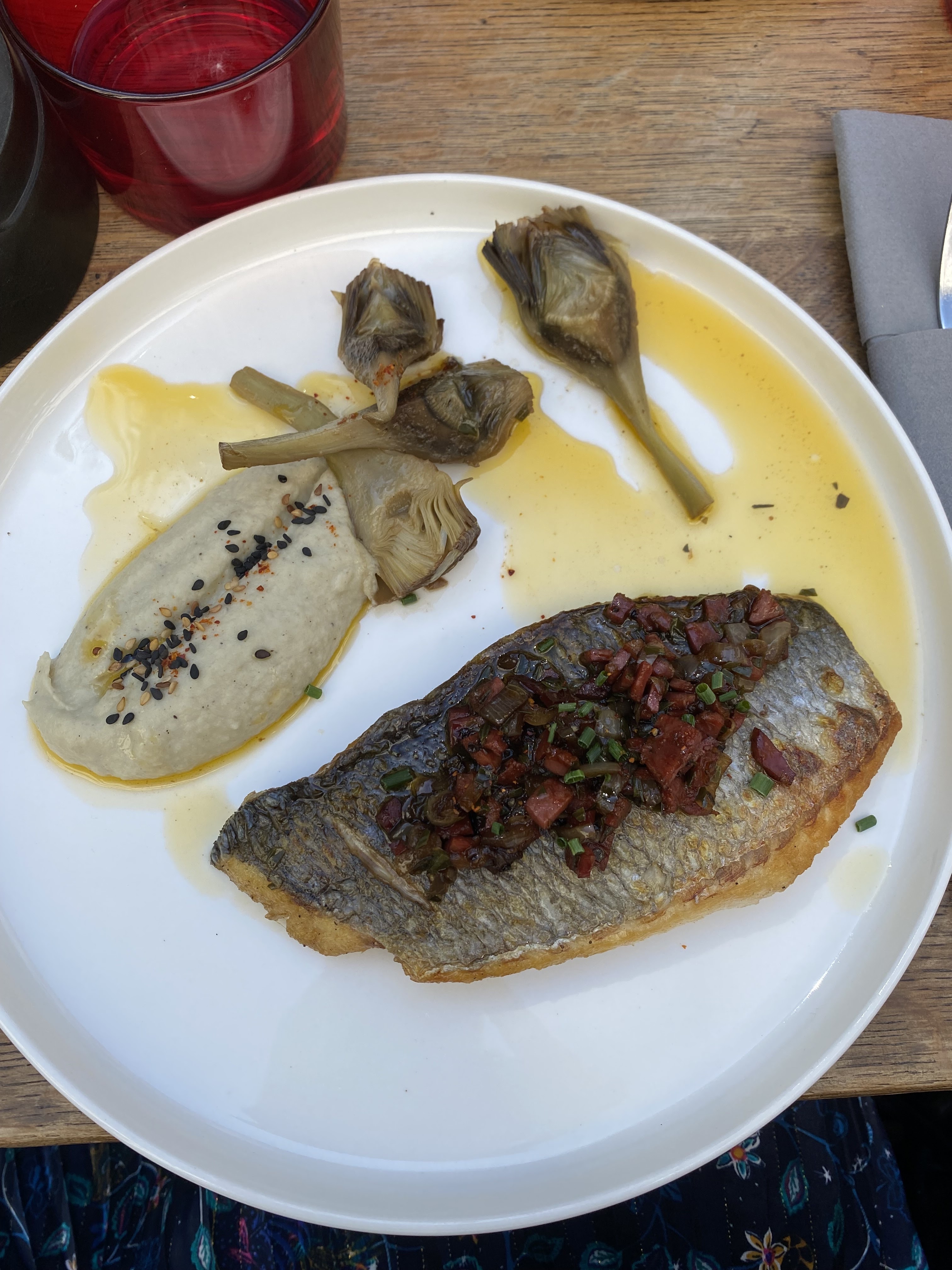 Déjeuner pour deux exceptionnellement bon (thon, tartare, avec un verre de vin, environ 50 €) et service formidable et sympathique :)