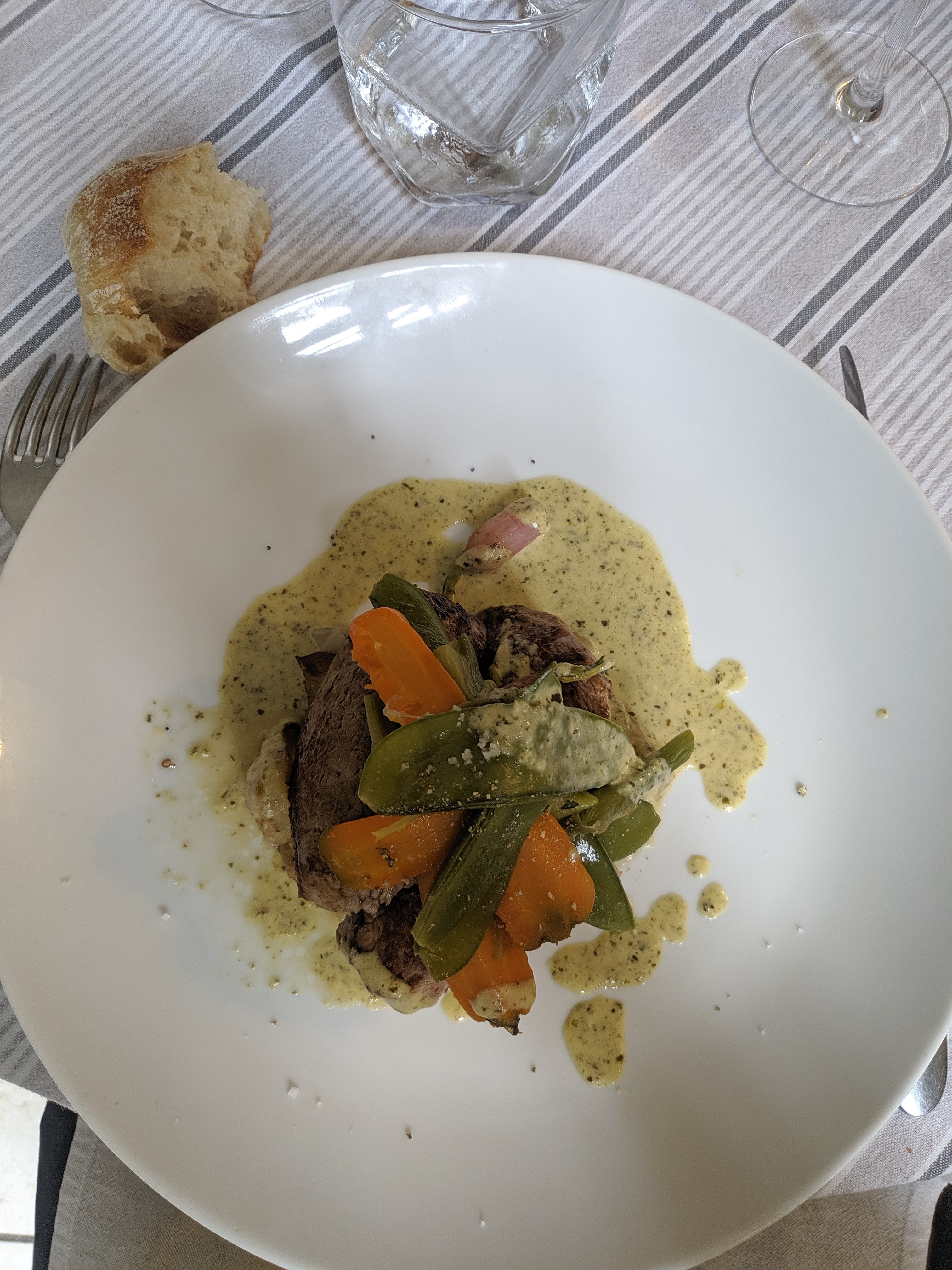 De l’entrée au dessert c’était surprenant et tellement délicieux… nous sommes partis émerveillés par les saveurs, le service et le cadre idyllique de la terrasse. Vraiment un sans faute !