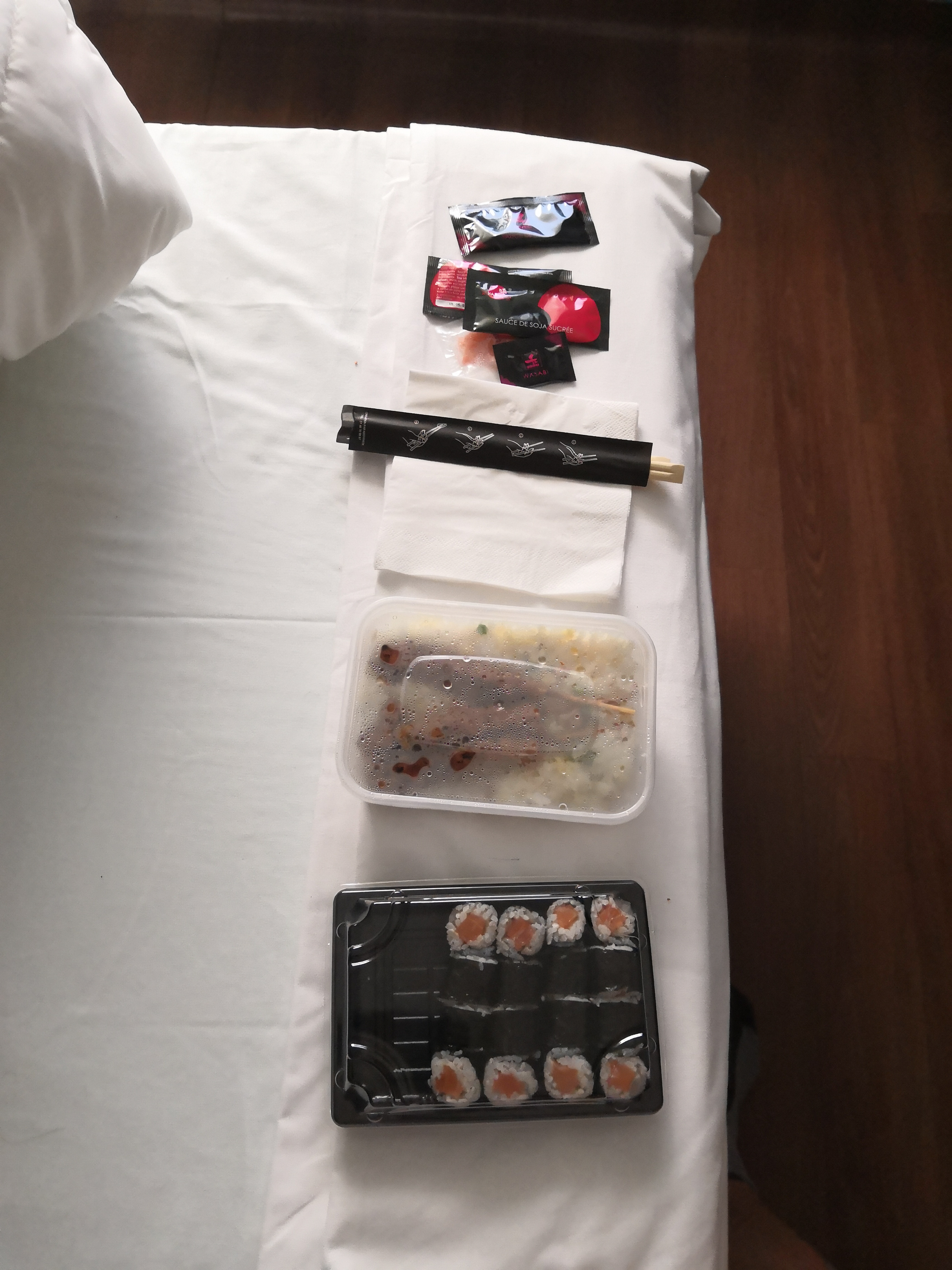 Commande à emporter. Ne connaissant pas la ville. J'ai effectué une recherche et c'est une bonne adresse les sushis sont bons pas sec le riz collant parfait. Aimant le wasabi déçu car le sachet est minuscule. Pour le menu enfant riz cantonnais volaille et 3 brochettes caramélisées le riz parfait les brochettes un peu moins à cause de la cuisson limite. Dabs l'ensemble je recommande