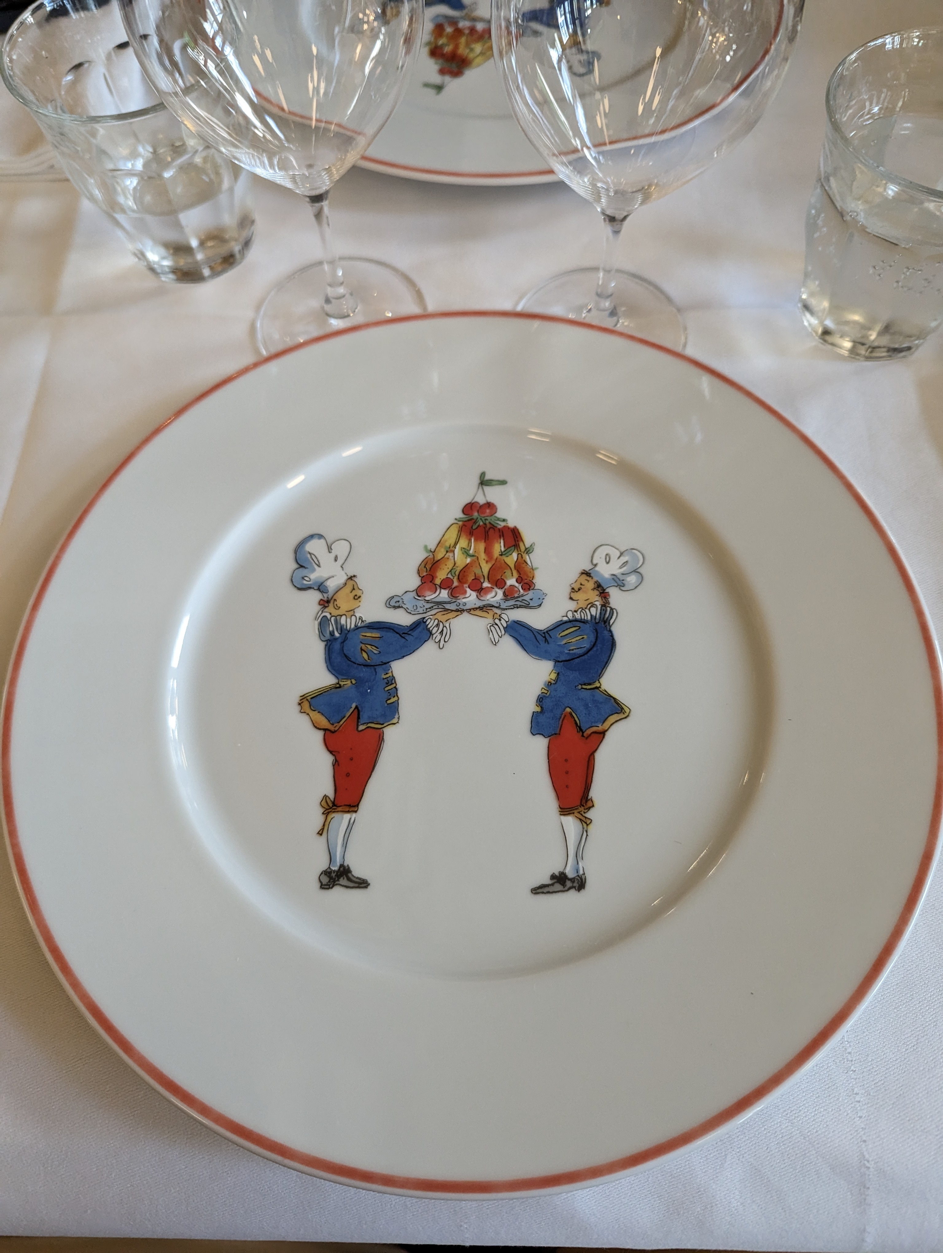 Un dîner correct un samedi soir, mais c’est vraiment une table formatée pour les touristes, made in Alain Ducasse. La salle est plutôt jolie, les tables pas trop serrées, ce qui permettrait de tenir une conversation sans forcer la voix s’il n’y avait pas un fond musical de classiques français un peu fort. Le personnel est inégal. Maitre d’hôtel prévenant, mais des serveurs zélés, probablement missionnés pour vous mettre dehors le plus vite possible, qui vous arrachent votre assiette de la table dès celle-ci terminée, voire vous demandent si vous avez fini parce que vous avez le malheur de poser vos couverts entre deux bouchées. On s’est adressé plusieurs fois à nous en anglais. Heureusement que la sommelière, joviale et sympathique, rattrape le niveau par ses bons conseils. J’ai particulièrement apprécié que chaque bouteille soit goûtée avant le service, ce qui évite les déconvenues de vins à problème. Venons-en au contenu des assiettes : c’était correct, mais attendu, sans petit plus qui donne envie de revenir. Les portions sont réduite, pas les tarifs. Quenelle de brochet un peu sèche, et sauce homardine trop acide à mon avis. Blanquette de paleron de veau très conventionnelle. Mont-d’or : on vous amène la boite en bois quasiment vide avec un petit reste de fromage sur un bord à racler à la cuillère … Surprenant. Le pain était délicieux, belles tranches de pain complet à la mie bien dense et à la croute croustillante. Un délice !