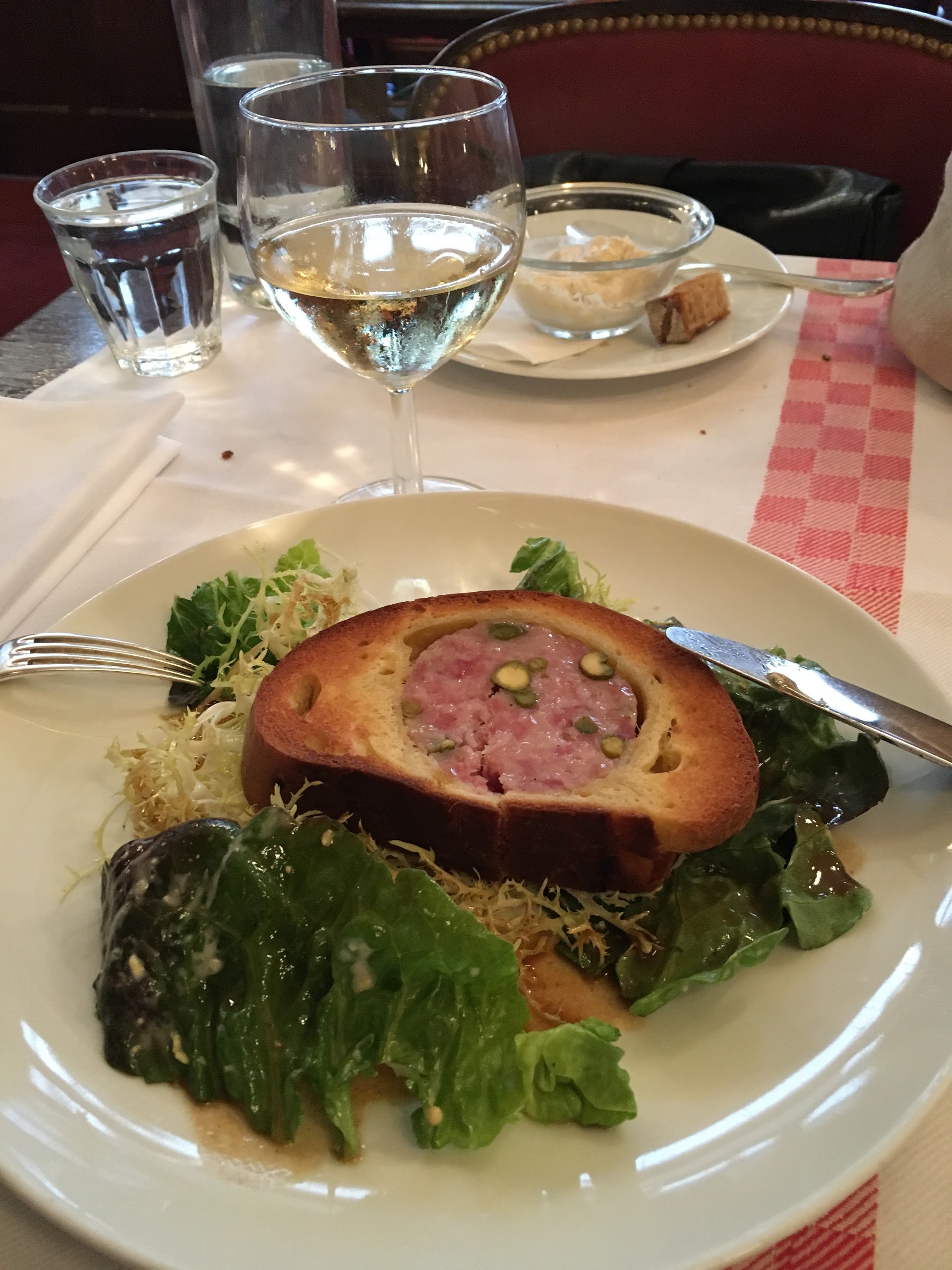 Lieu très beau, dans son jus mais propre et en très bon état. Service impeccable. Mets délicieux, les hors d’oeuvre sont très bons et sympas à partager. La tarte aux cèpes était absolument délicieuses et les plats (tête de veau et téton de venus) parfaitements exécutés. Dans l’ensemble un sans fautes à part peut-être l’addition un peu salée. 160€ a deux avec une bouteille de vin, deux hors d’oeuvre, une entrée, deux plats.
