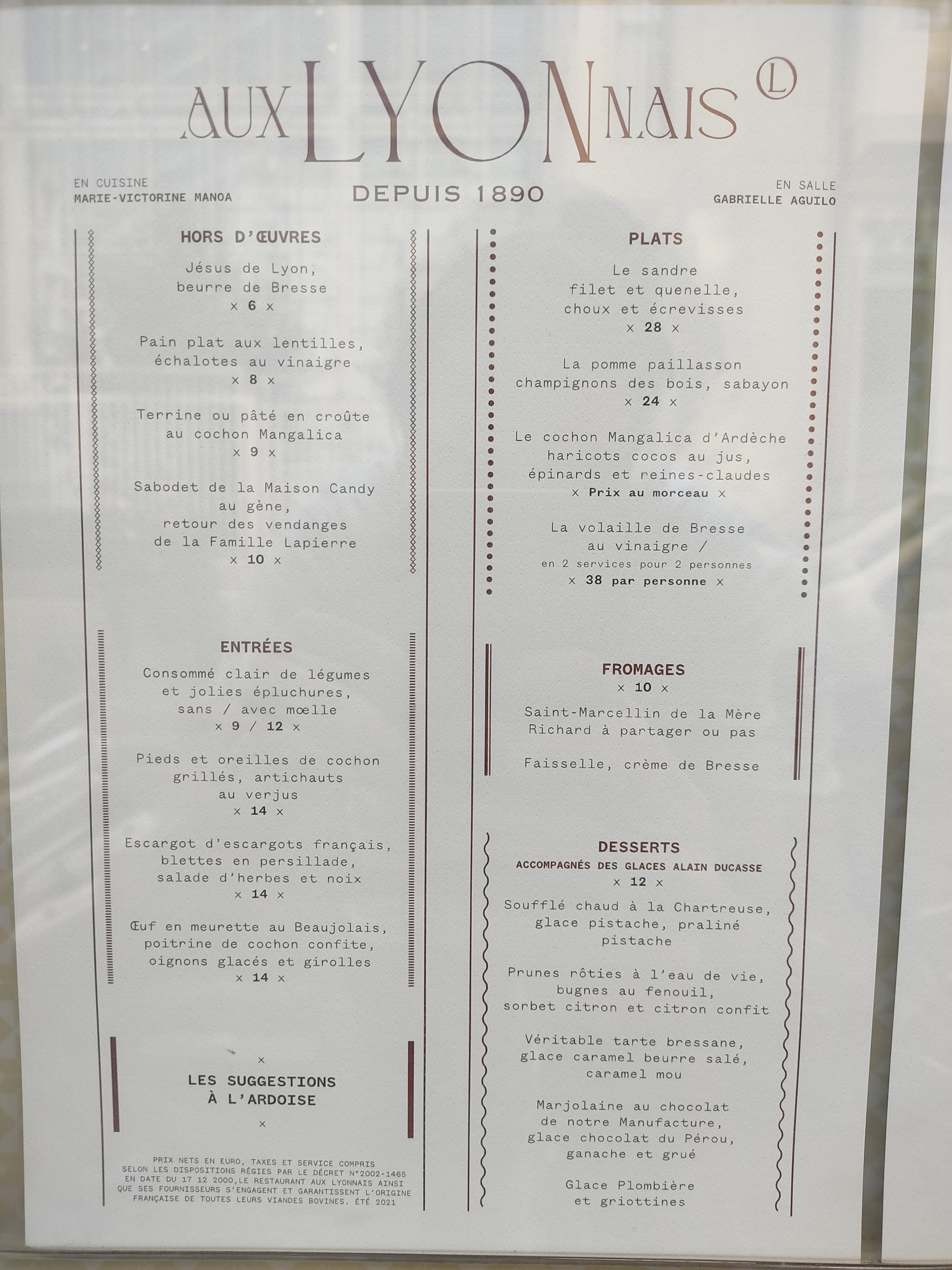 La nouvelle cheffe est totalement à côté de la plaque, en tout cas très loin de Lyon et sa gastronomie. Plats insipides, chers, service nullissime. Absence de travail dans ce piège à touristes, la pire arnaque de la ville. Fuyez !