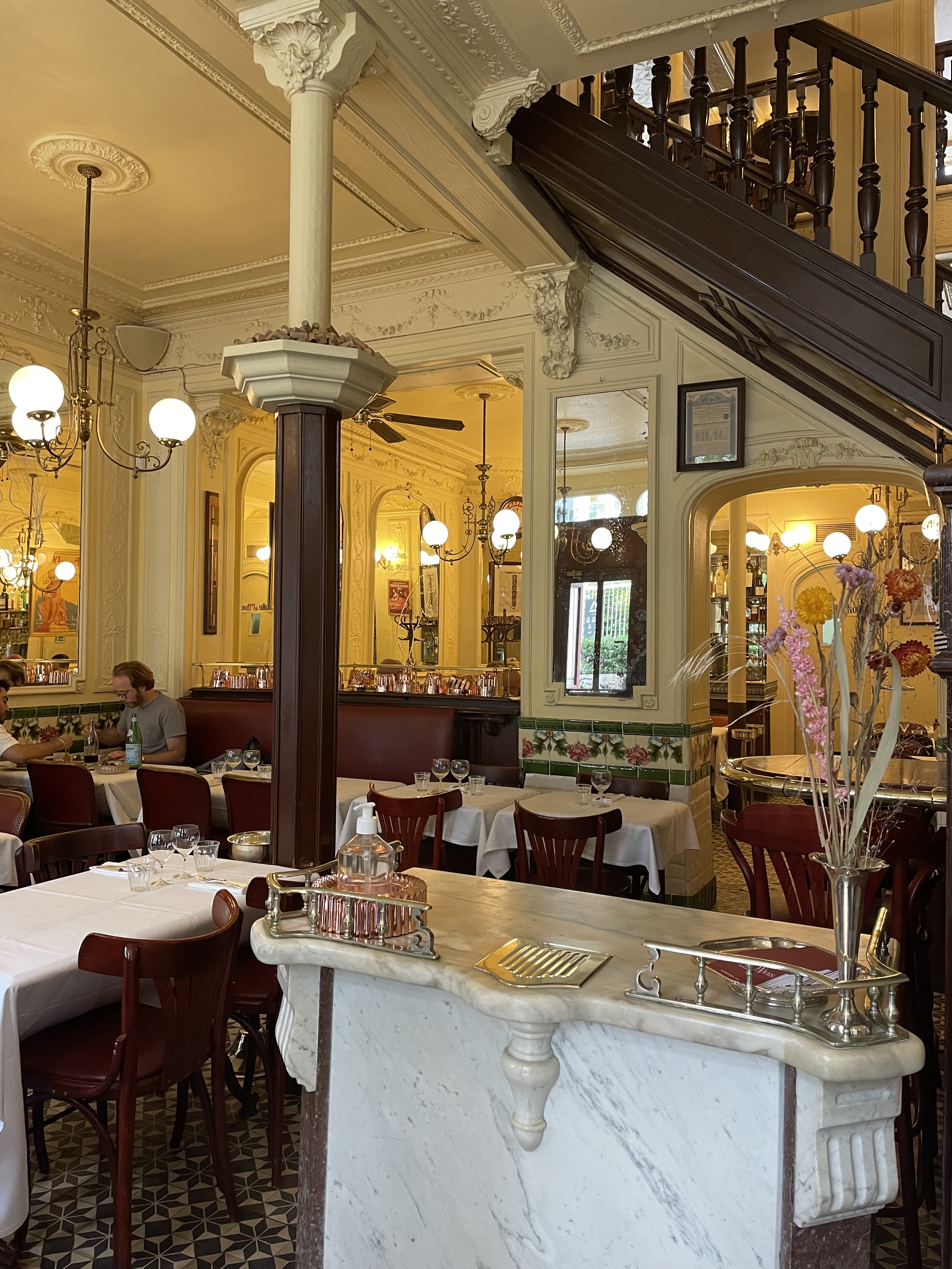 Lieu mythique parisien, idéal pour une réelle coupure au déjeuner ! Les plats sont dingues, savoureux et beaux sans oublier le service qui est au top. 34€ le menu entrée+plat+dessert (ainsi que amuse bouche et les madeleines de fin de repas)