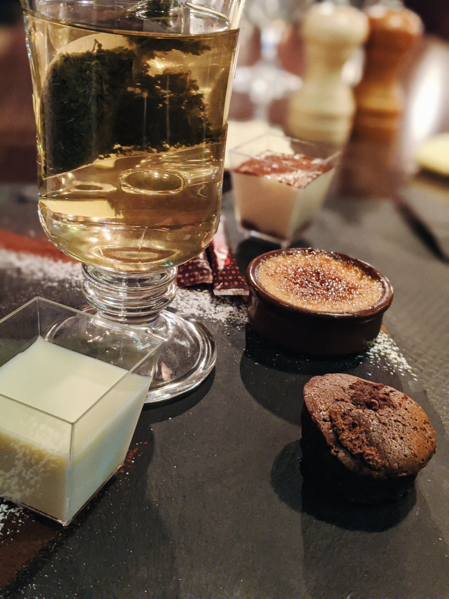 Hier j'ai dîner aux magots recommandé par l'hôtel holiday où je passais la nuit. Cela faisait longtemps que je n'avais pas eu envie de refaire ce geste d'enfance, finir le plat en sauçant avec le doigt... :-). J'ai vraiment très bien mangé ! Et le dessert gourmand fait maison est incroyable.