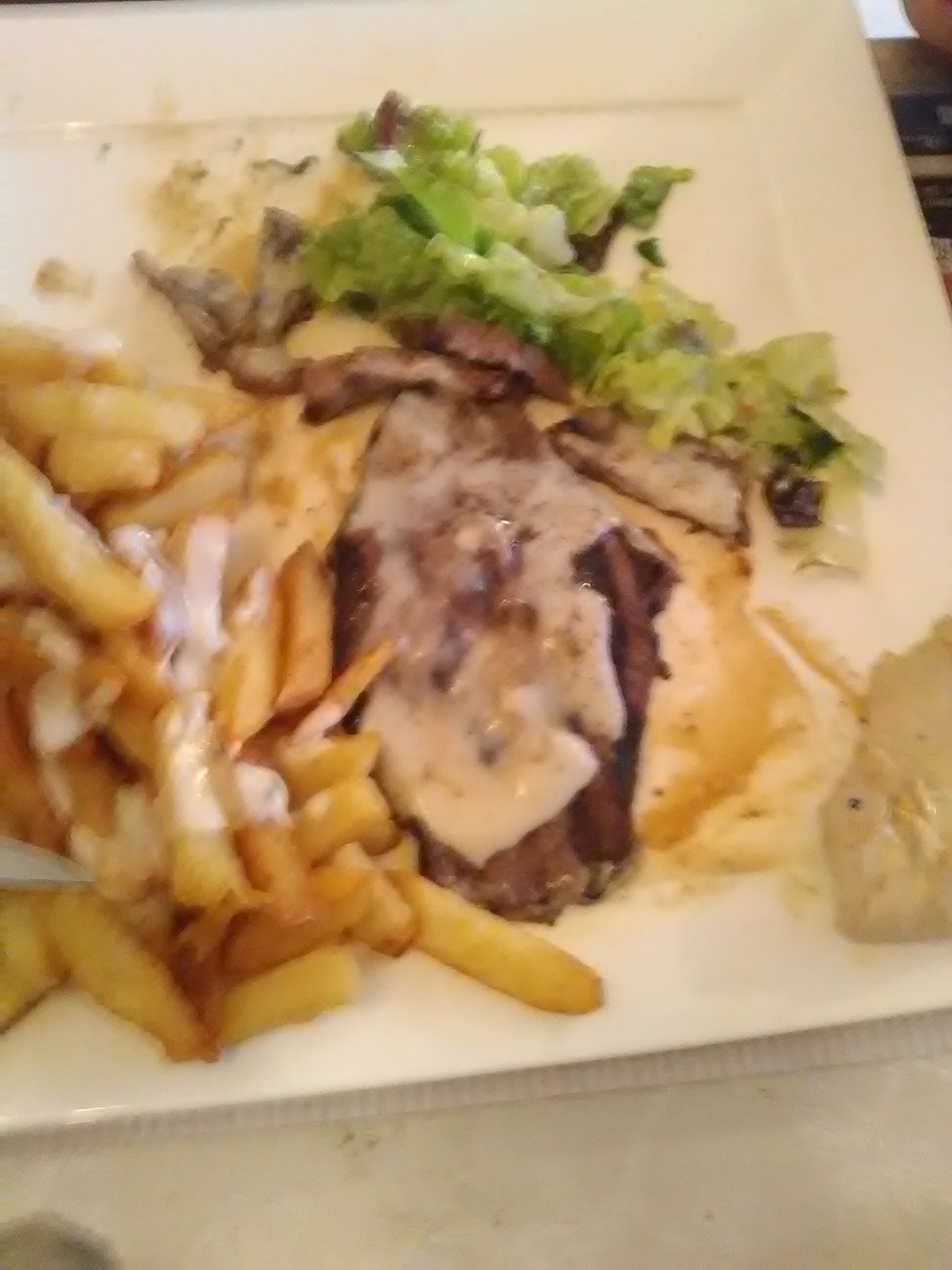Bon accueil, les cocktails étaient pas tops mais ça va. En plat monsieur a prit l’entrecôte il a été très satisfait par la portion il s’est regalé. Moi j’ai eu un Welch très bon également seul bémol un long cheveux retrouvé dedans j’ai malheureusement été dégoûté. ( cuisinière sans charlotte?). Le dessert était succulent à part le manque de choix de glace (plus de chocolat, plus de caramel..)pour monsieur.