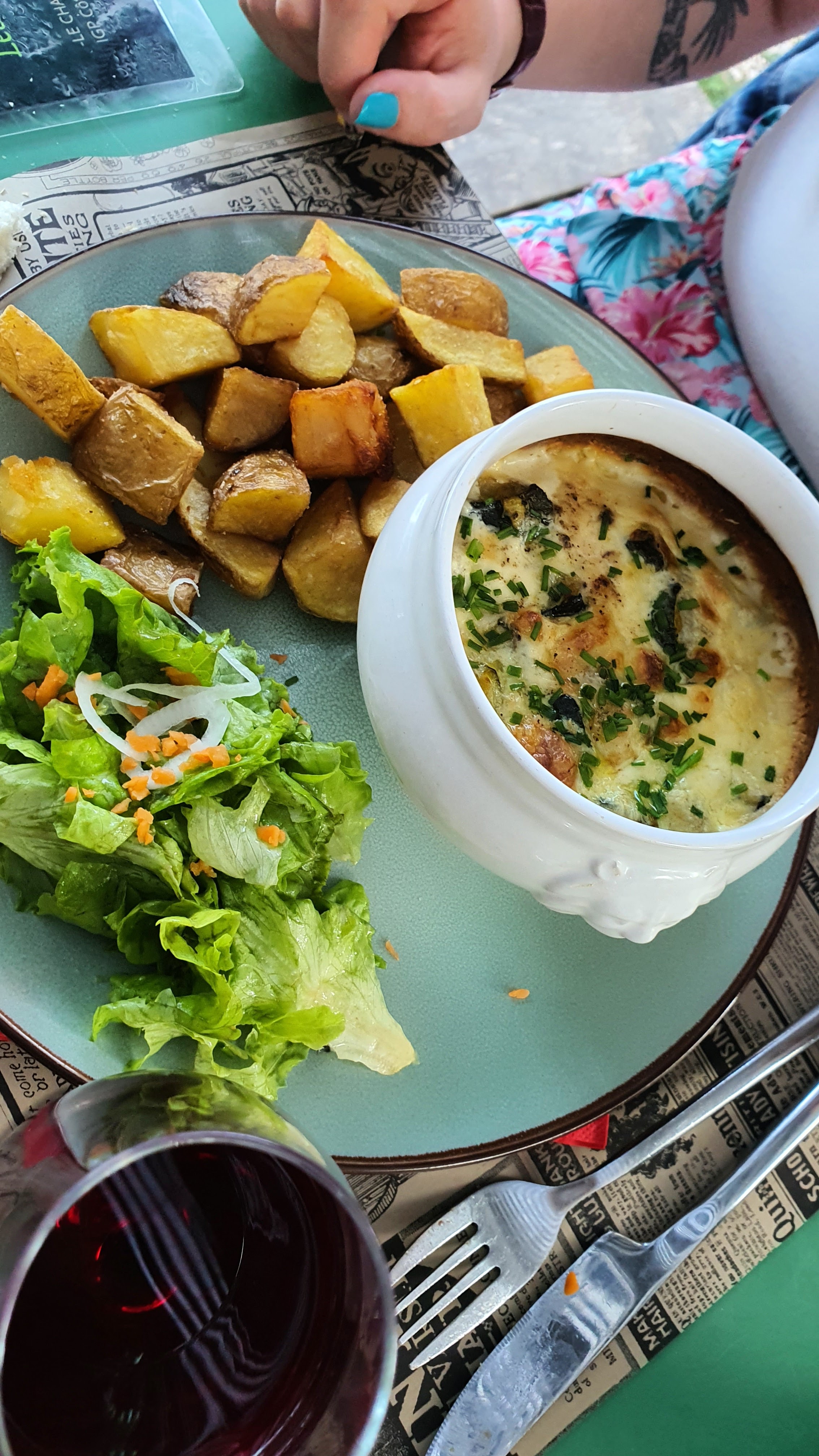 Repas, accueil, cadre c’est top. Vous avez l’impression de dîner sur la terrasse de la maison de vos amis. Les assiettes sont top, rapport qualité/prix très intéressant et l’accueil très agréable. Je recommande. Point à noter : situé à l’extérieur du centre ville