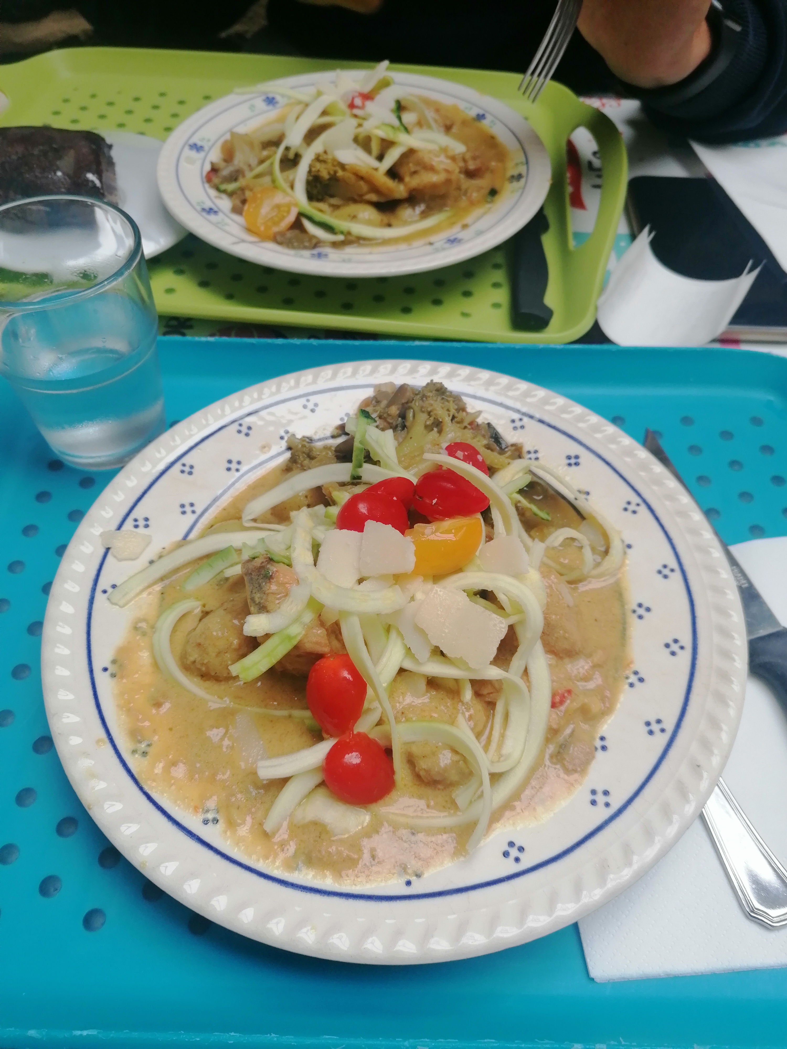 Un peu perplexe au départ sur le fonctionnement, le chef explique les plats du jour , les desserts, on commande, on prend son plateau sur le mode self et on vous apporte le plat chaud Par contre rien à voir avec une ca tine : c’est délicieux et sympathique ! A refaire et plats à emporter possibles