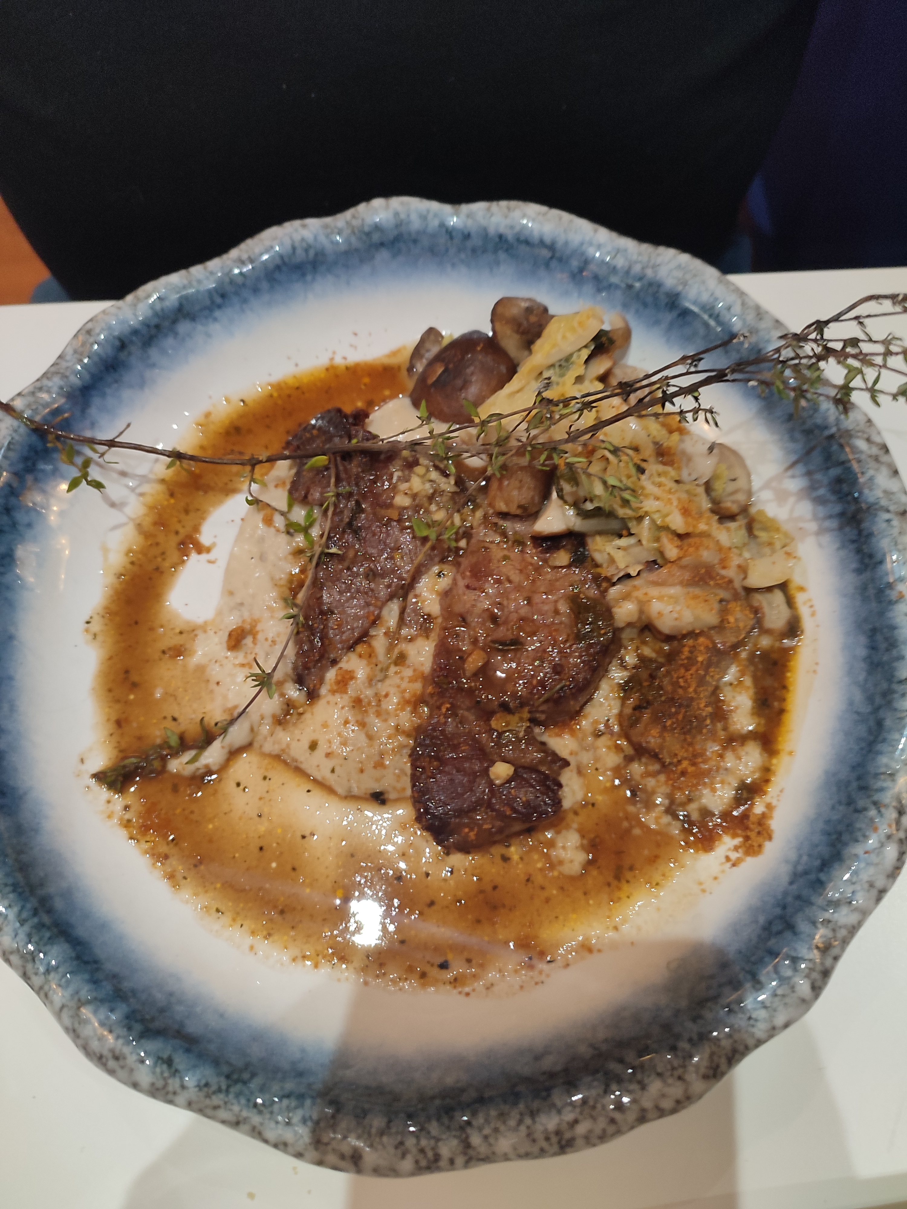 Repas recherché et très copieux. Des goûts savoureux grâce aux produits frais. De petit amuse bouche en guise d’entrée et au moment du café ! Personnel très professionnel ! Le patio est magnifique 😍 En bref, je recommande les yeux fermés ✅