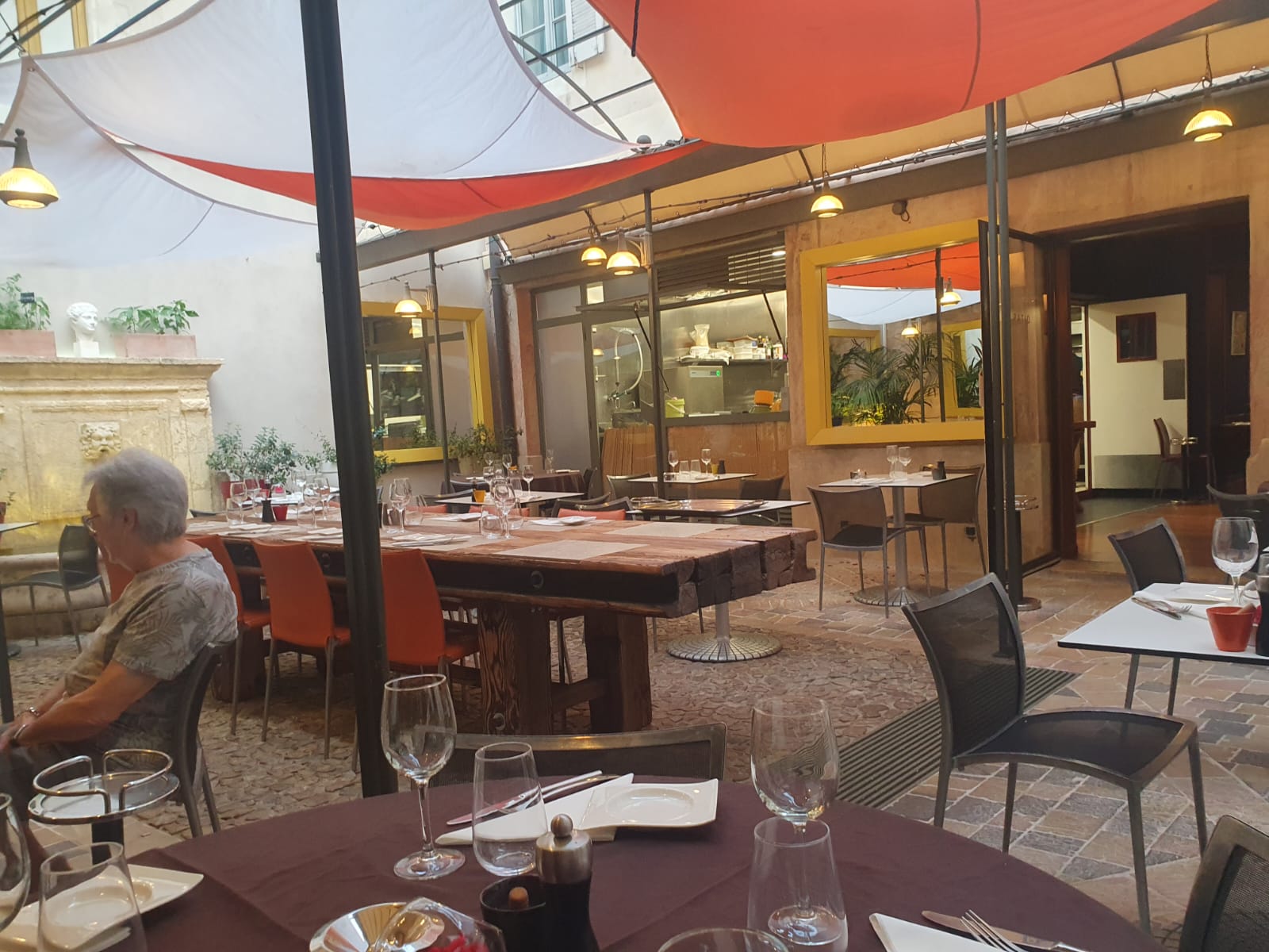 La jolie terrasse nous à fait envie, le patio est très sympathique également. Nous avons adoré l'apérol Spritz que l'on nous à préparé. Les plats étaient également bon et le service impeccable. En bref, nous avons adoré ce petit restaurant dans Nîmes et nous y retournerons. N'hésitez pas essayez le.