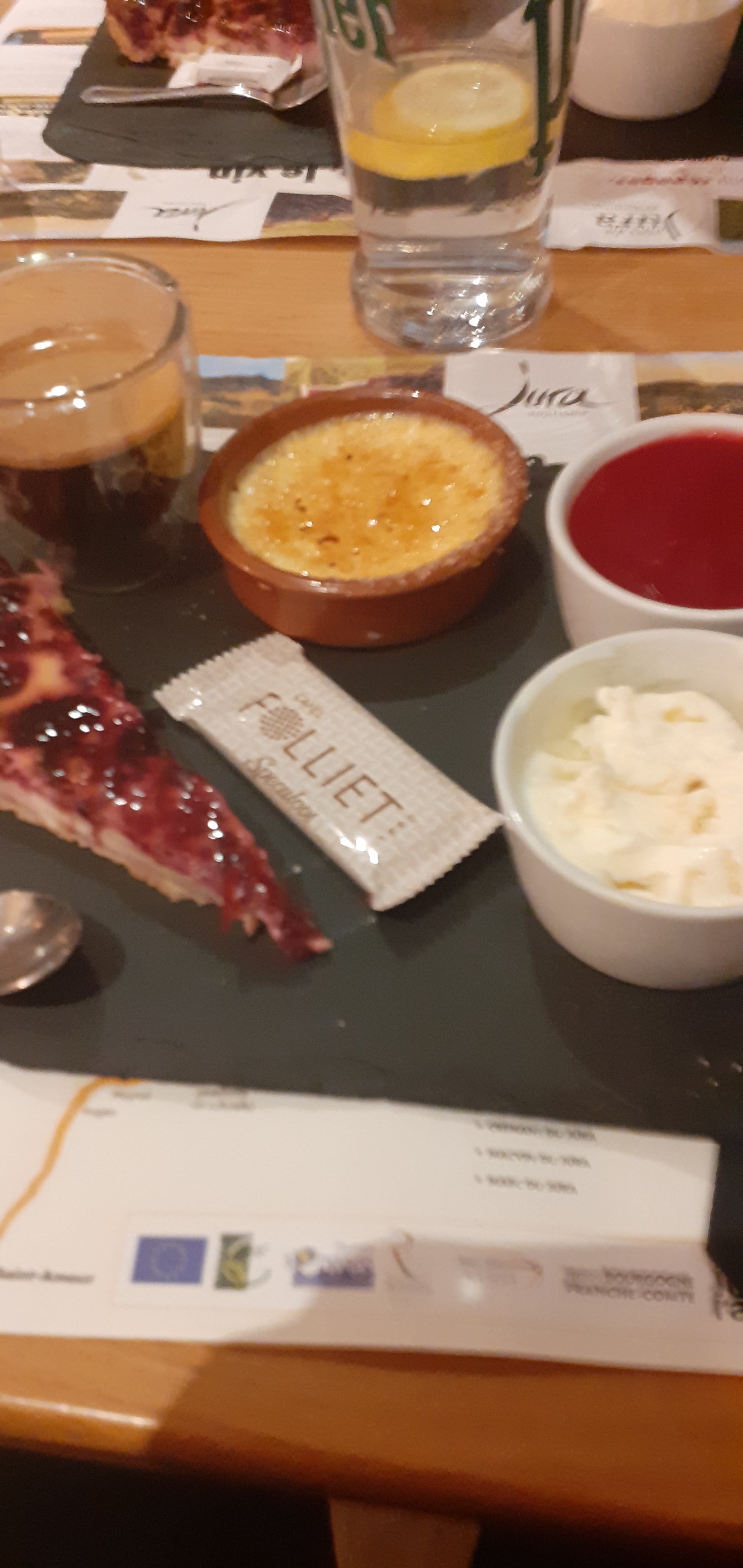 Passage par Poligny pour acheter du comté, et oui ! Et petit repas dans ce restaurant où il y beaucoup de monde, donc un peu d'attente pour être servis, mais bon, on s'y attend. Tout le monde est sympathique et les plats sont bons et du terroir. Le café gourmand est très gourmand, rien à redire ! À refaire lors de mes prochains achats de comté !