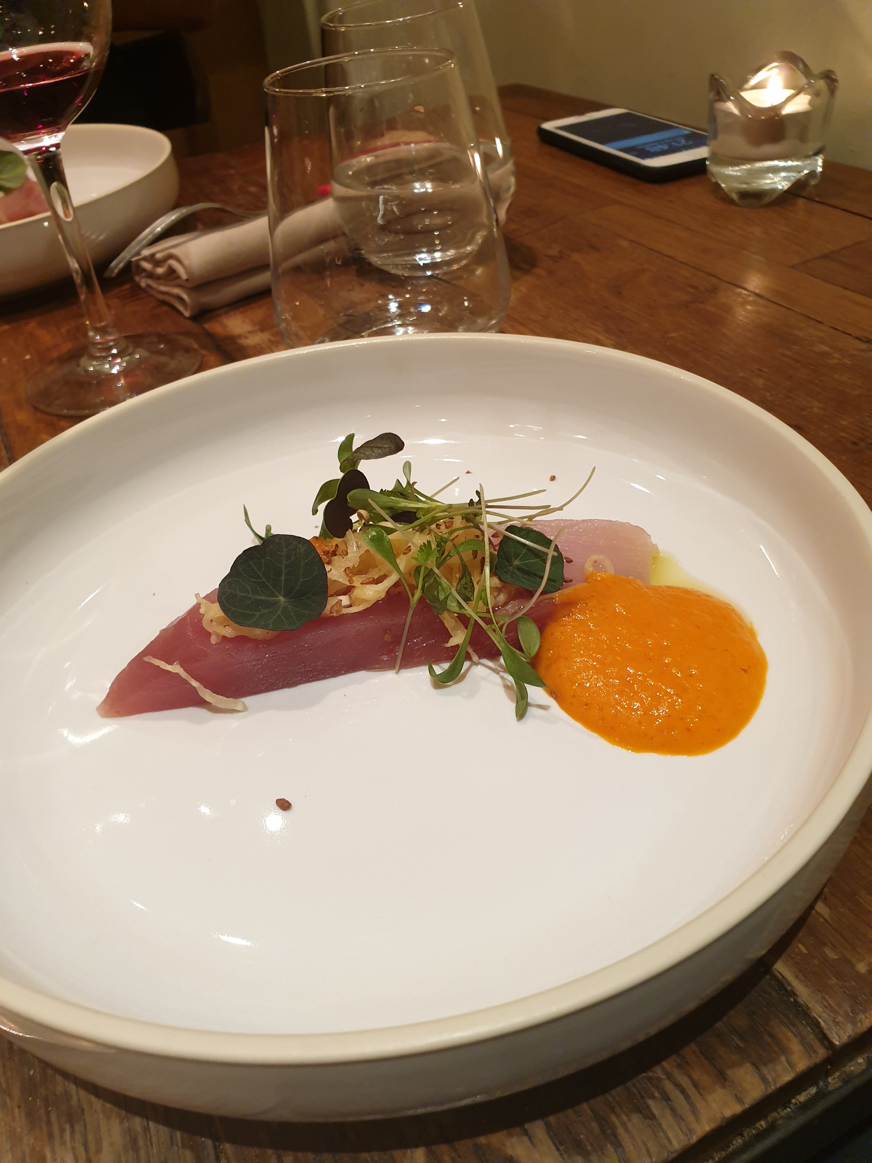 Cuisine délicate et intéressante. Saveurs d’ailleurs et produits locaux. Jolies mise en assiette et jolies assiettes. Service agréable et souriant. Carte des vins à explorer un peu plus.