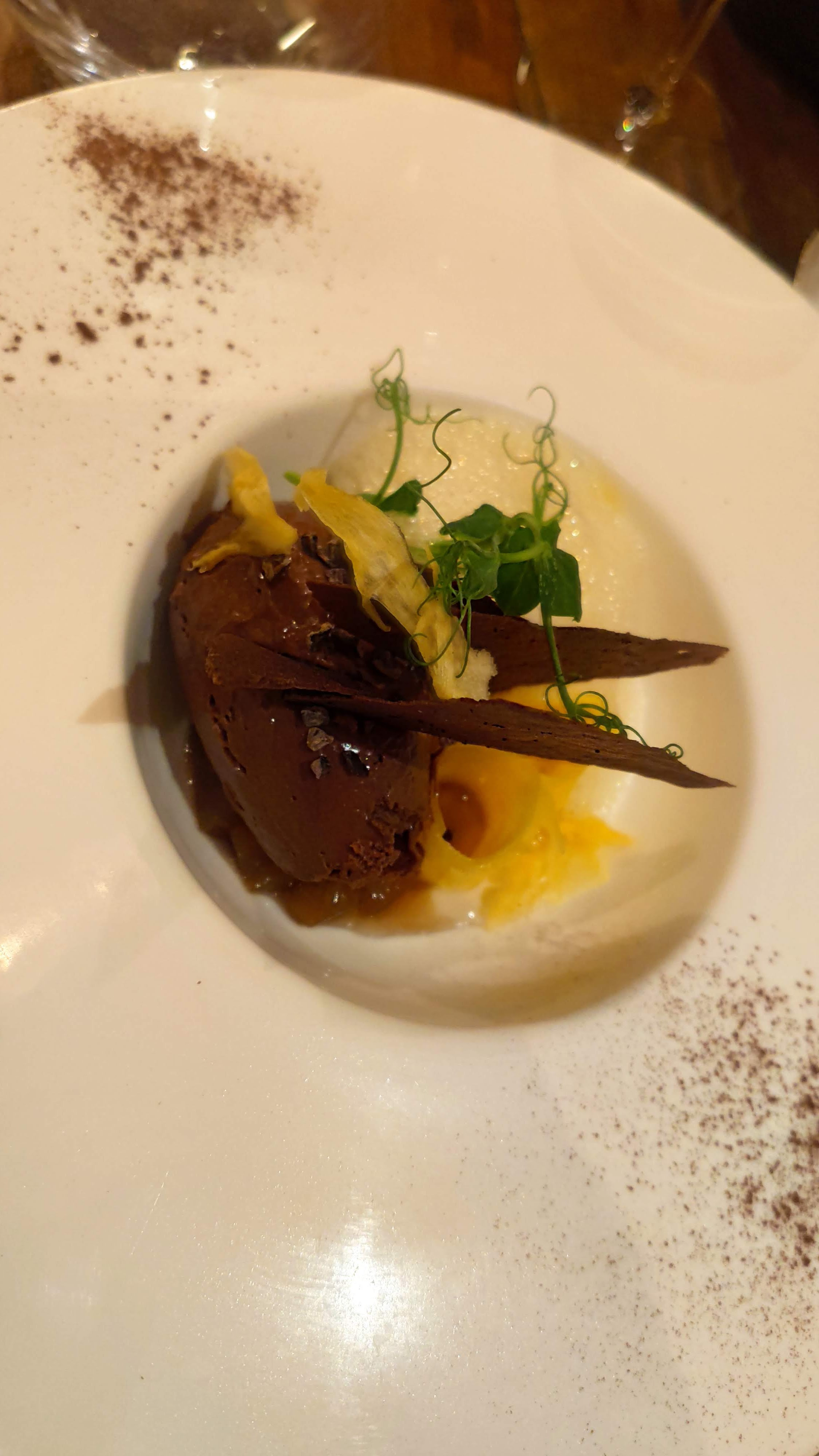Belle expérience culinaire. Le cadre est chaleureux. Nous avons pris la dégustation des 6 plats. Super !! Du début à la fin … et ce désert !! Le service est sympathique Merci au chef Kazuhiro Fujieda et son équipe pour cette délicieuse soirée.
