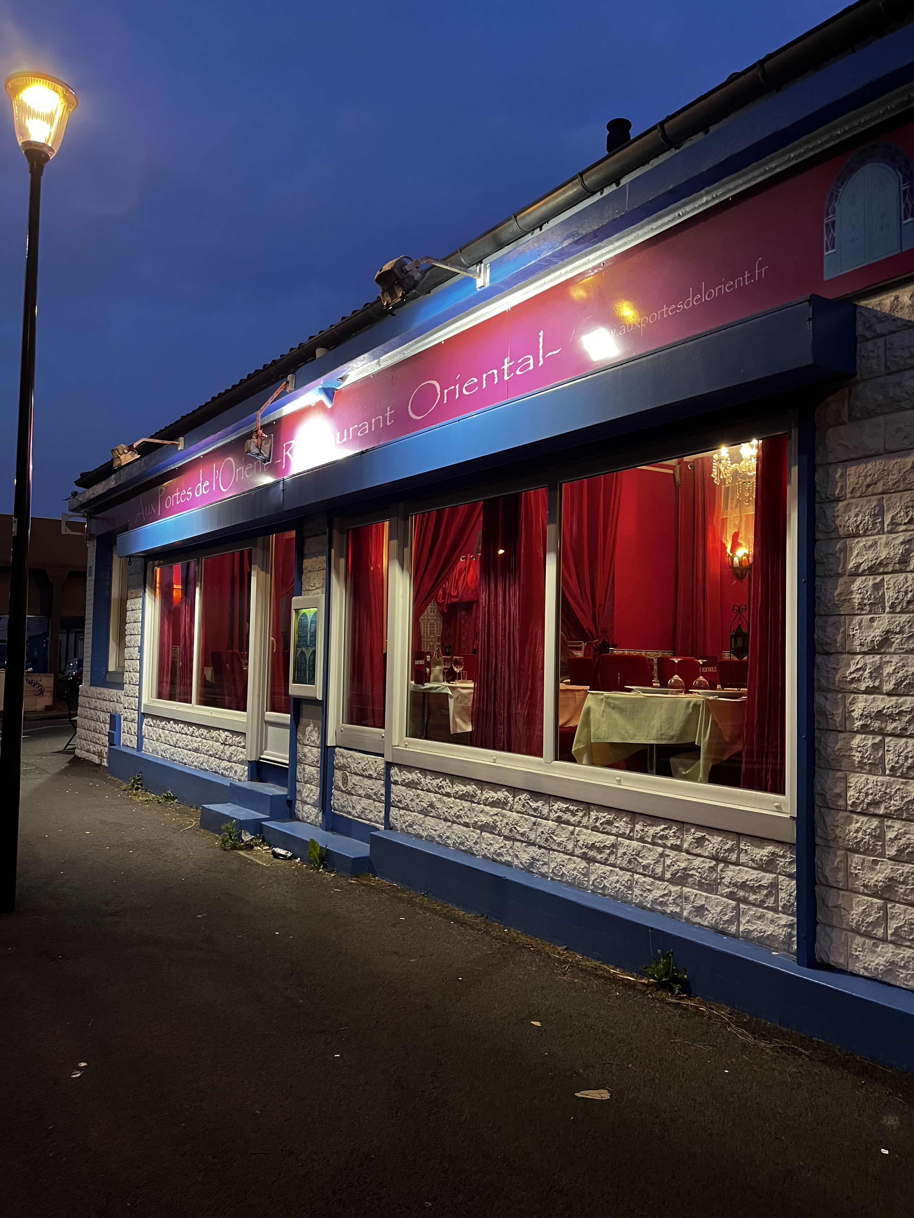 Bonjour, conseillée par une amie j ai commandé 3 parts de couscous royal pour mon anniversaire.. en allant chercher ma commande, je n ai pas pu résister aux sublimes desserts présentés au comptoir ! Faient maison, comme tout le reste, c est un régal! Accueillie chaleureusement, j ai beaucoup apprécié ce restaurant et son personnel. Quand au couscous, délicieux et copieux! La meilleure adresse où se rendre en toute confiance ! Merci Aux portes de L orient