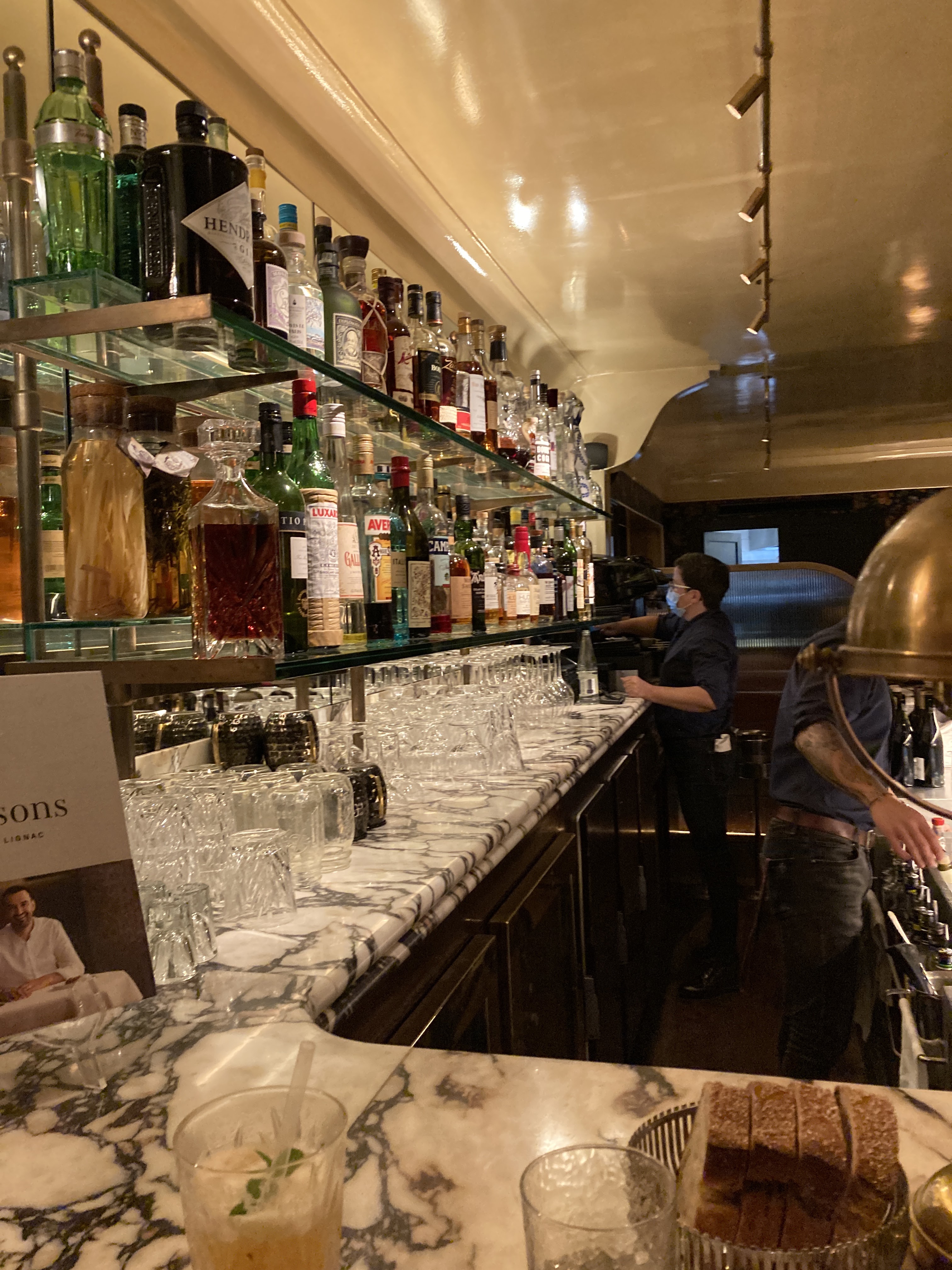 Des prix élevés pour être coincés au bar entre va-et-vient des clients et des personnels. Des cocktails originaux, des plats très inégaux en quantité, qualité et présentation. Une cuisine qui part dans toutes les directions de cultures gastronomiques, entre France, Asie, Amérique latine, Afrique du Nord. Une sensation un peu désagréable, perdu dans ces multiples fusions dans le restaurant d'un Chef français nommé aux prés. On s'attend à autre chose. Un barman très agréable et doué. Une Cheffe de salle dérangeante par ses commentaires et conversations bruyantes au téléphone (réservations). Des jeunes au service souriants et bien intentionnés. Des très bons cocktails servis sans aucun amuse-bouche, noix, etc.... ?!? Excellentes entrées, Aubergine confite ou empanadas avec un condiments exquis. Épaule d'agneau avec des saveurs inutiles, tajine citron romarin... très moelleuse, mais trop grasse et surtout forte en goût. Le pain est excellent ! Desserts, très bon pain perdu aux poires. Difficile d'obtenir une alternative à la glace vanille quand on n'aime pas ça, avec en prime, le commentaire de la Cheffe de salle. Le baba au rhum imbibé en cuisine car les clients vidaient les bouteilles de rhum mises sur la table biscuit imbibé, mais le rhum a probablement été oublié ou bu avant d'arriver dans l'assiette. C'est un baba de pâtisserie mais pas de restaurant. Une crème chantilly classique, pas exceptionnelle. Les prix, cocktail (19€ en moyenne) et verre de vin (17€ en moyenne), me paraissent exagérés, 230€ à deux, dans ce cadre et pour ces produits, il faut revoir le classement prix de €€ à €€€€ Au final, un grand 3 étoiles mais vraiment un tout petit 4.
