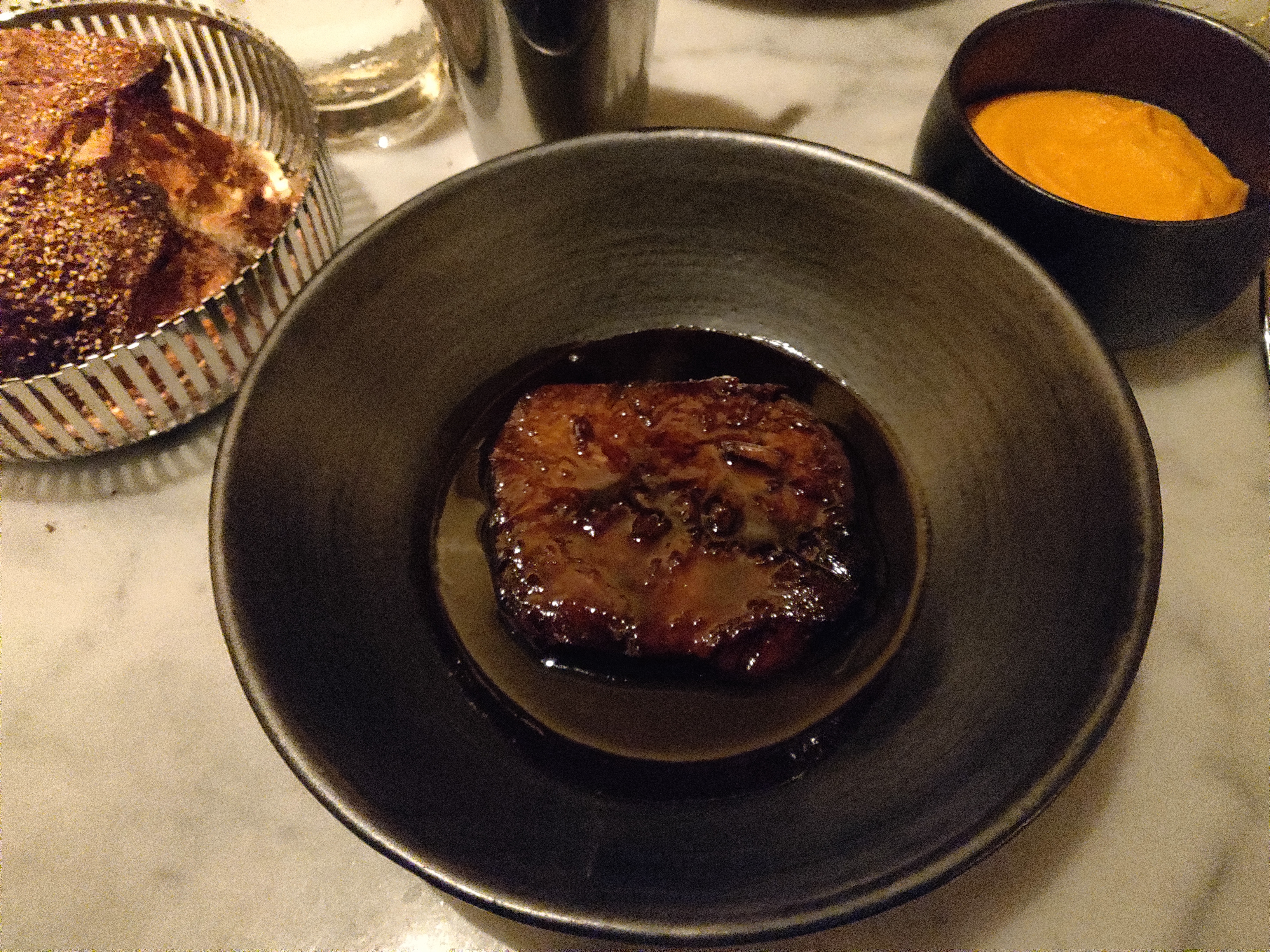 Tout d'abord je dois dire que les entrées et les plats étaient exceptionnels (nous avons pris l'Œuf aux champignons et le Carpaccio de bœuf à la truffe noire et sésame en entrée et le Cabillaud noir et bœuf confit à l'ail noir en plat). En accompagnement, je recommande la Mousseline de Carottes et Curcuma. Même les frites, qui n'ont rien à voir dans un restaurant selon moi, étaient intéressantes. Le service était très bon. Les desserts (nous avons pris des gaufres et du pain perdu) et les cocktails étaient de bonne qualité mais pas aussi spéciaux que le reste de la carte.