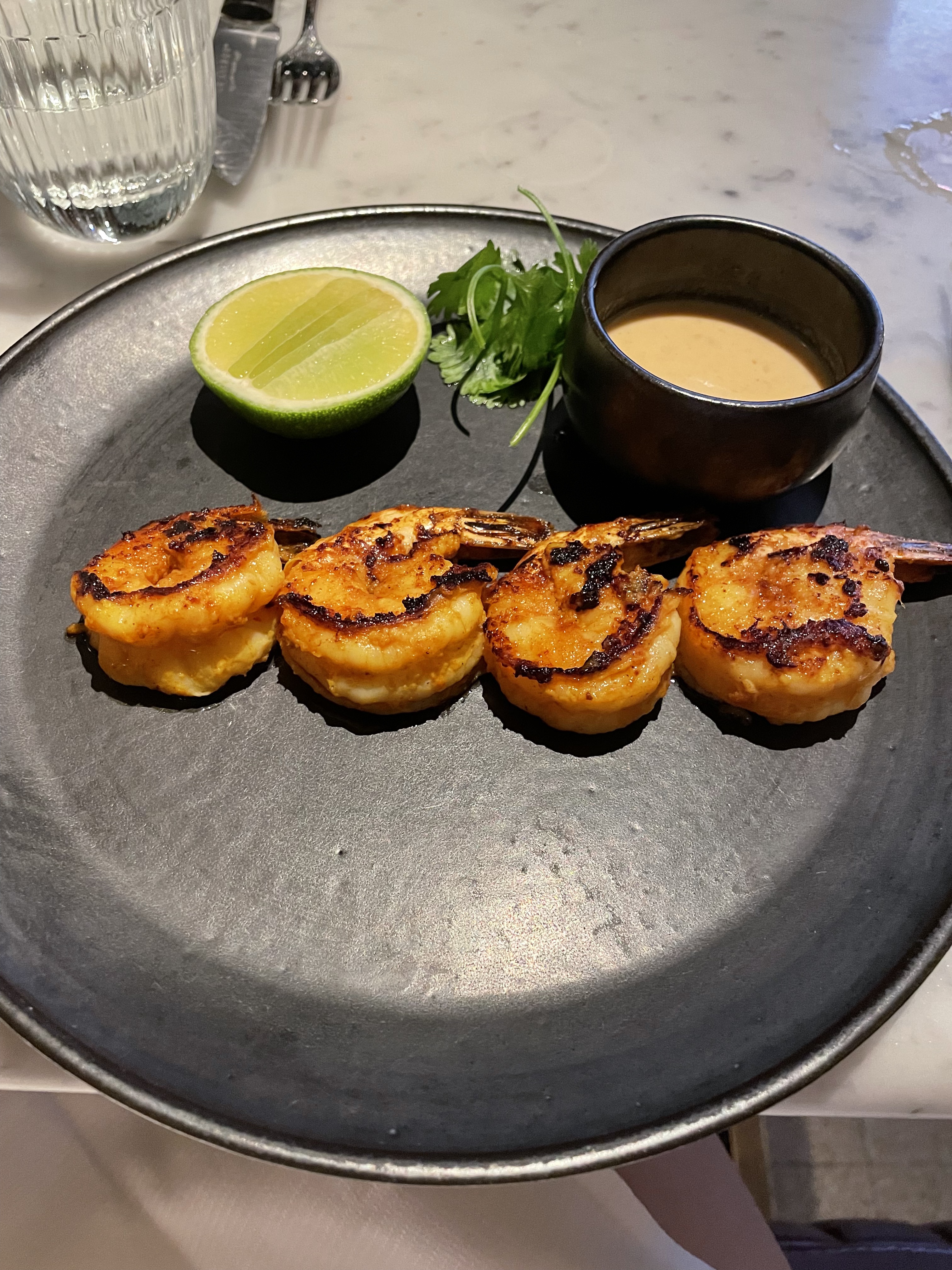 Déjeuner en tête à tête dans une ambiance feutrée, super service et découverte d un poisson délicieux le black cod ( caramélisé au miso).La sauce cacahuètes des gambas à tomber. Le mocktail Green Light est top! Et que dire du millefeuille de pommes de terre croustillantes. Hâte d y retourner pour partager l epaule d agneau confite.