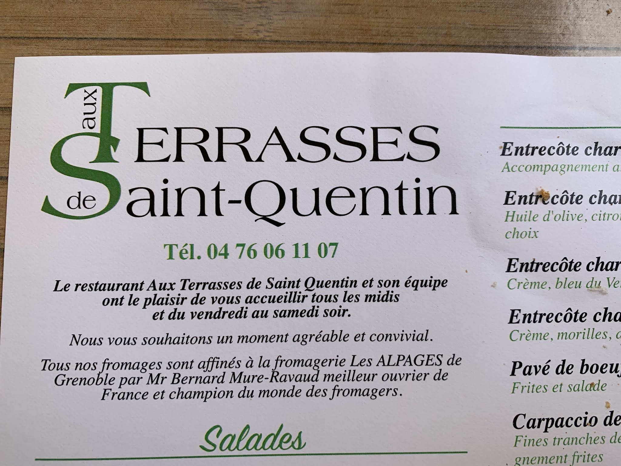 Nous sommes venus voir un match de rugby a Tullins nous avons donc déjeuner aux terrasses de saint Quentin très bien accueilli par le patron malgré beaucoup de monde resto presque complet nous avons très bien mangé burger au st marcelin chèvre chaud de Montaud fromage local et entrecôte aux morille un pur régal merci pour ce moment de convivialité et chapeau pour sortir tous ces plats a deux nous reviendrons quand nous seront de passage dan le coin.