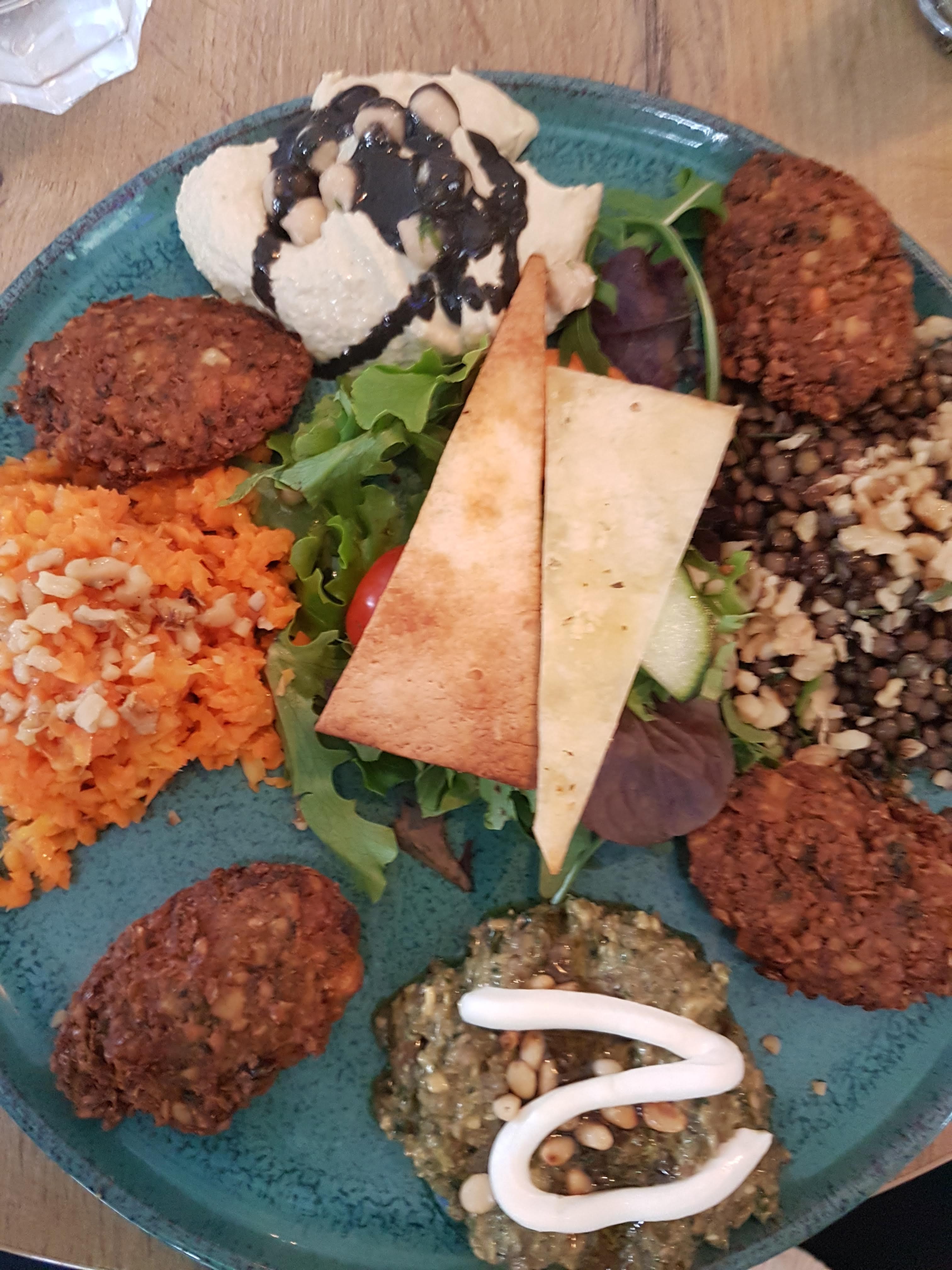 Voilà deux jours de suite que je déjeune dans ce restaurant et je vous le recommande allez y les yeux fermés ! Salade burrata délicieuse, Burger falafel également et niveau dessert le keskul un péché mignon!!!!