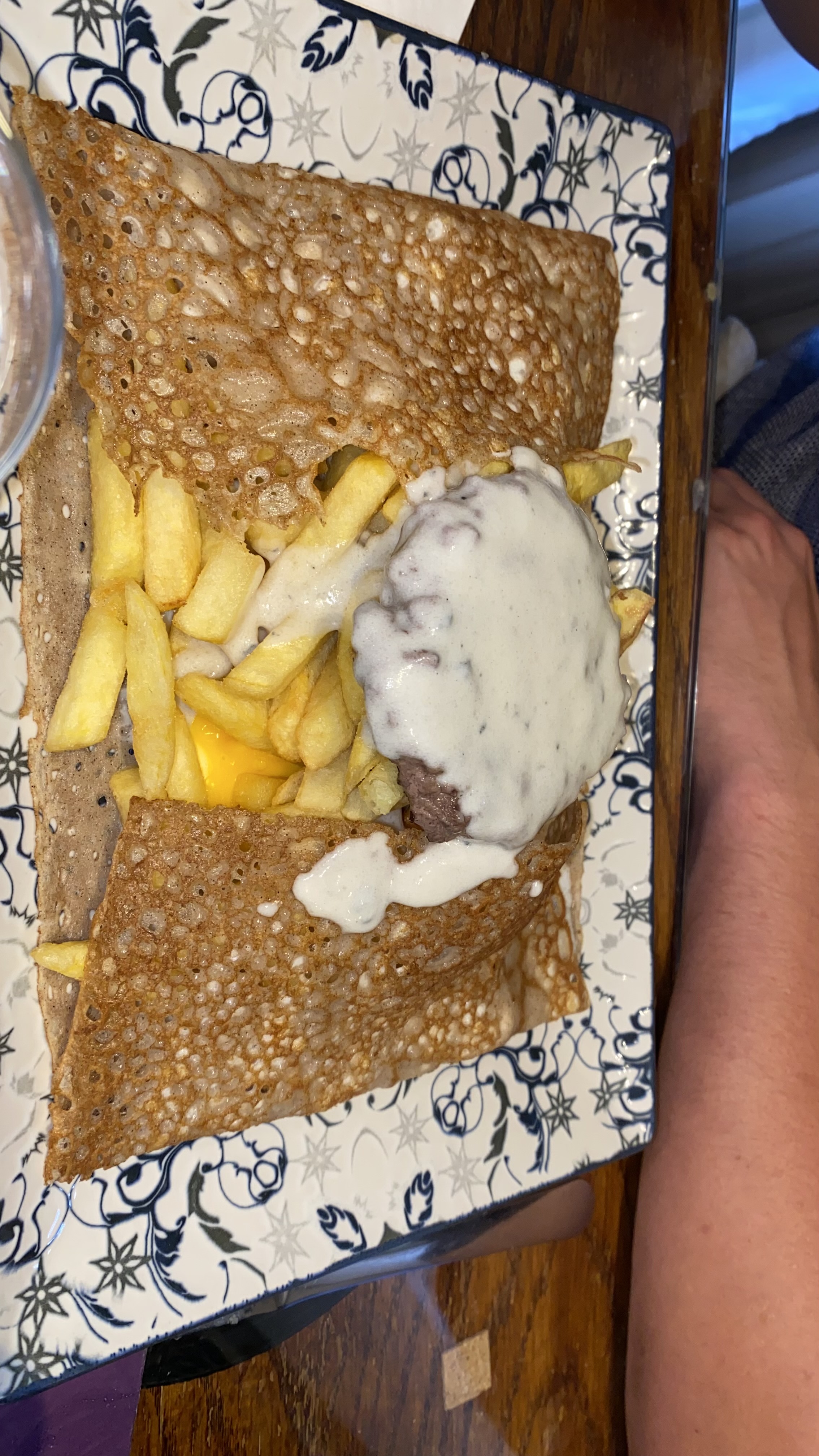 Un lieu fantastique, un plat vraiment excellent avec des crêpes bien garnie, et puis le dessert était juste fabuleux!! Rapport qualité / prix au top!