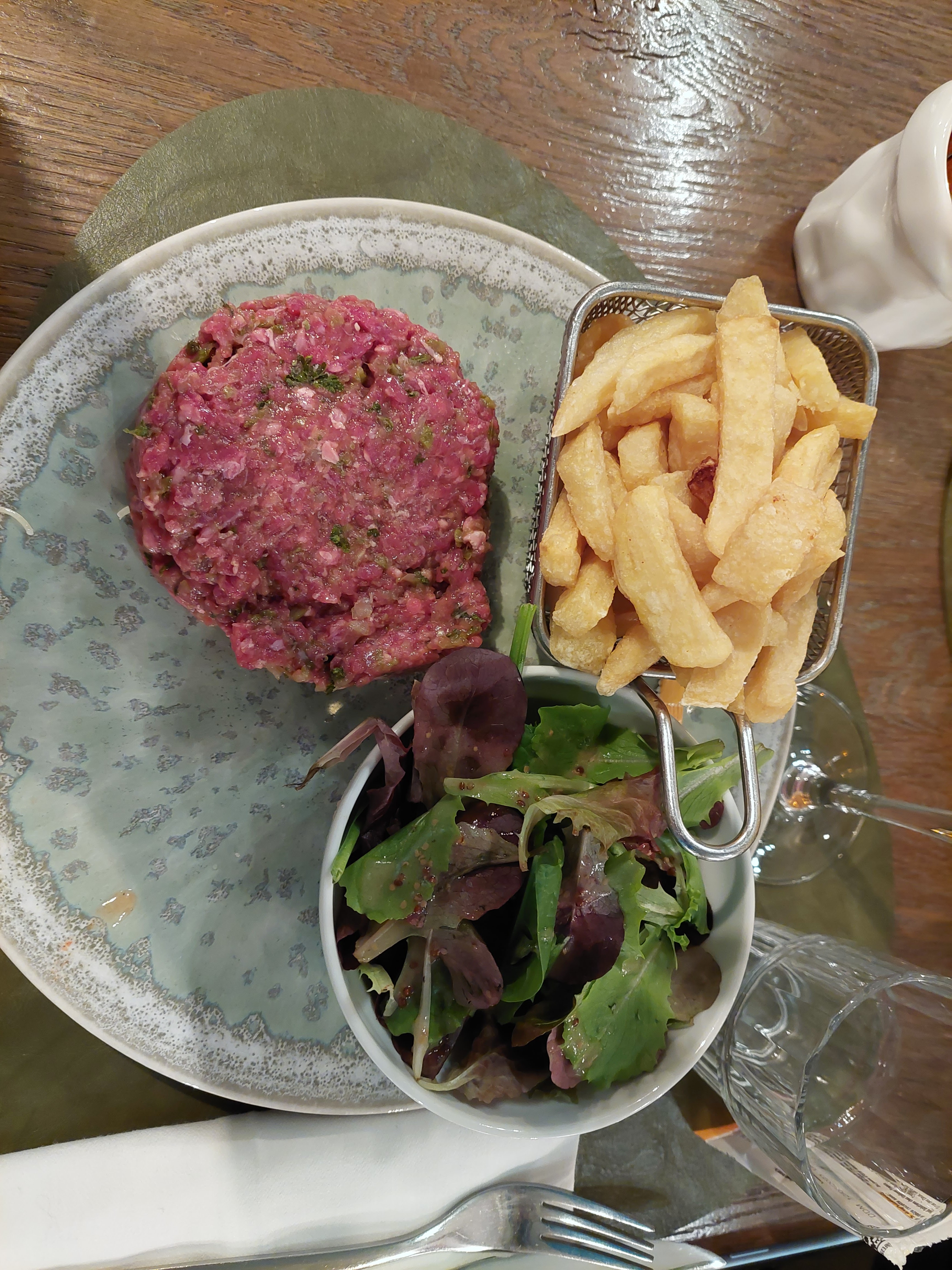 I believe there is a lot of FAKE POSITIVE REVIEW for this restaurant. Beware of tourist SCAM. One of the worst restaurants I've ever tried. I took the house steak tartare, no seasoning, just some counter peanuts buried in the steak. Accompanied by potatoes (these were potatoes cooked in water and quickly put in the oven, disgusting). All of this sold at a very high price. Really a scam. Je crois qu'il y a beaucoup de FAUX AVIS POSITIFS pour ce restaurant. Attention arnaque à touriste. Un des pires restos que j'ai pu essayer. J'ai pris le steak tartare maison, aucun assaisonnement, simplement quelque cacahuète de comptoir enfoncé dans le steak. Accompagné de potatoes (c'était des pomme de terre cuite à l'eau et passer rapidement au four, déguelasse). Tout ça vendu à très bon prix. Vraiment une arnaque.