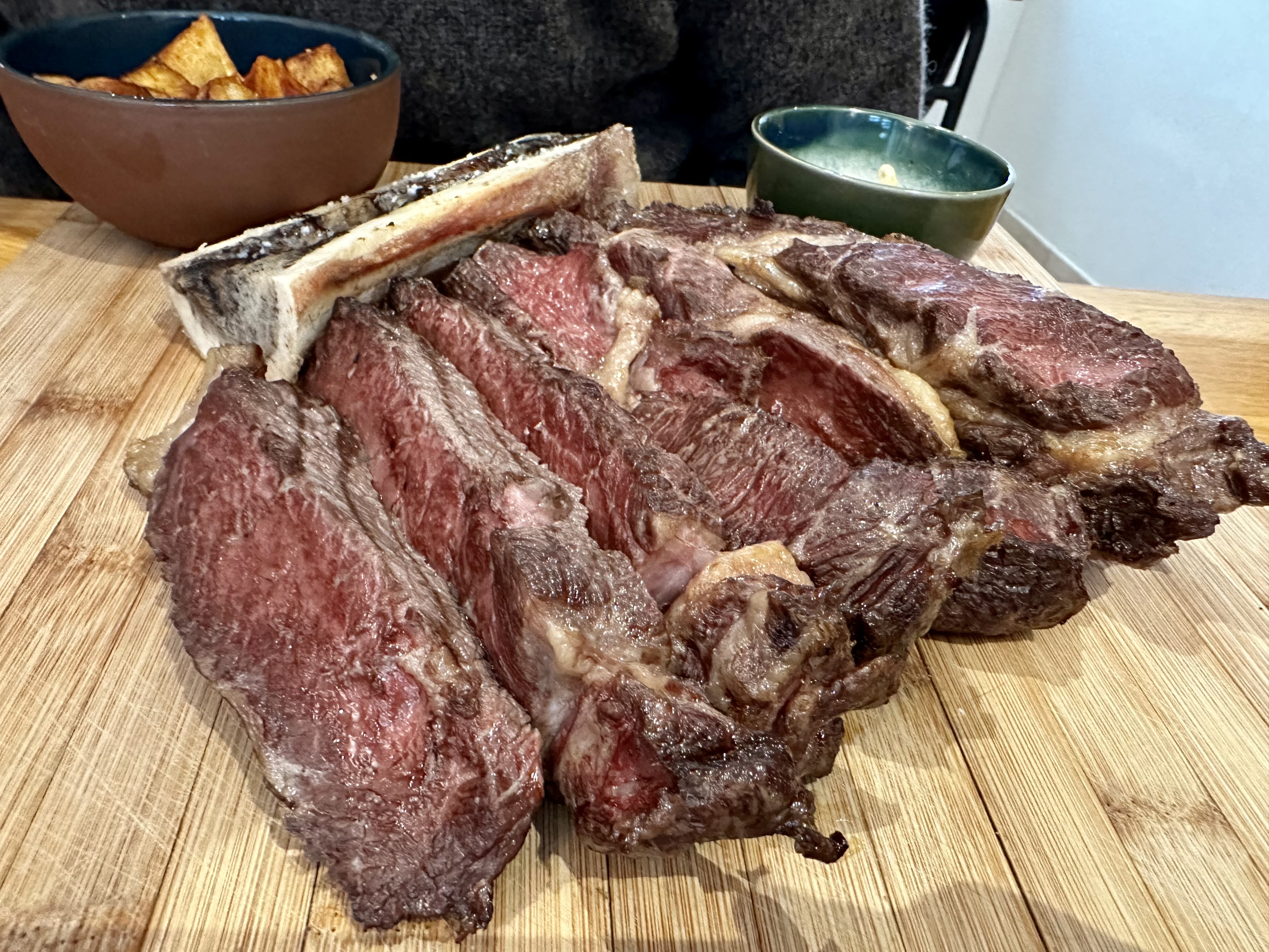 Menu fantastique, nous avons tout apprécié, la burrata était sensationnelle et nous avons suivi avec la côte de bœuf qui était cuite à la perfection, elle était également accompagnée d'un joli accompagnement de purée de légumes et de pommes de terre. La bière que j'avais était également délicieuse et je n'en avais jamais bu auparavant, ma femme a bu quelques verres de champagne rose recommandé. Le serveur était très poli et travaillait très dur pour s'assurer que toutes les tables étaient satisfaites. Je reviendrais certainement si j'étais de retour dans la région.