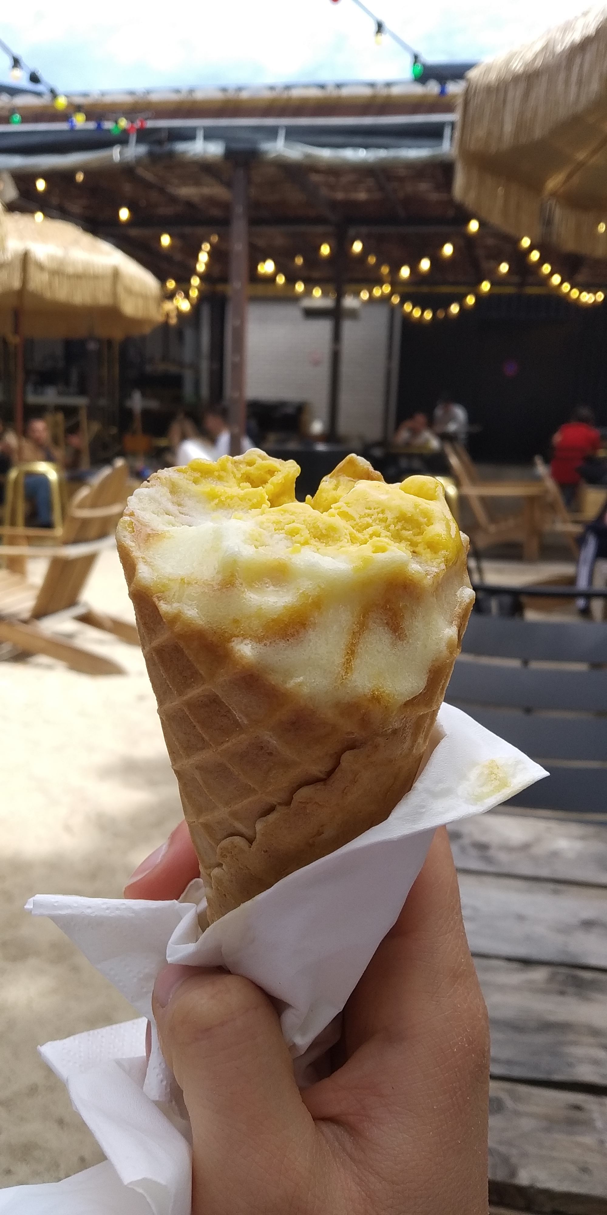 Lieu sympa, il n'y avait plus de place en salle, nous avons donc migré dans l'espace extérieur couvert, un peu frisquet. Mais l'ambiance générale et la cuisine ont compensé cet inconvénient.