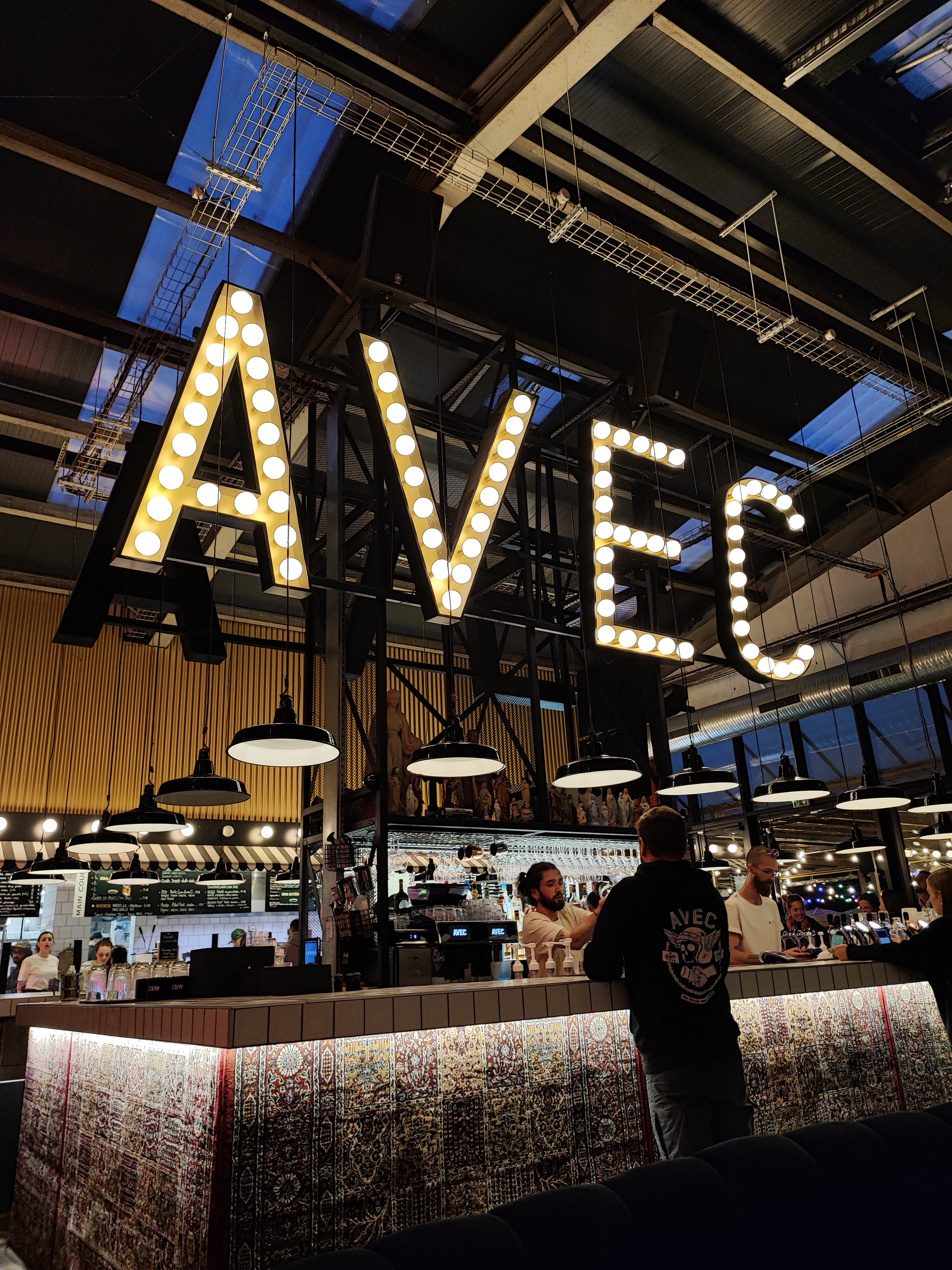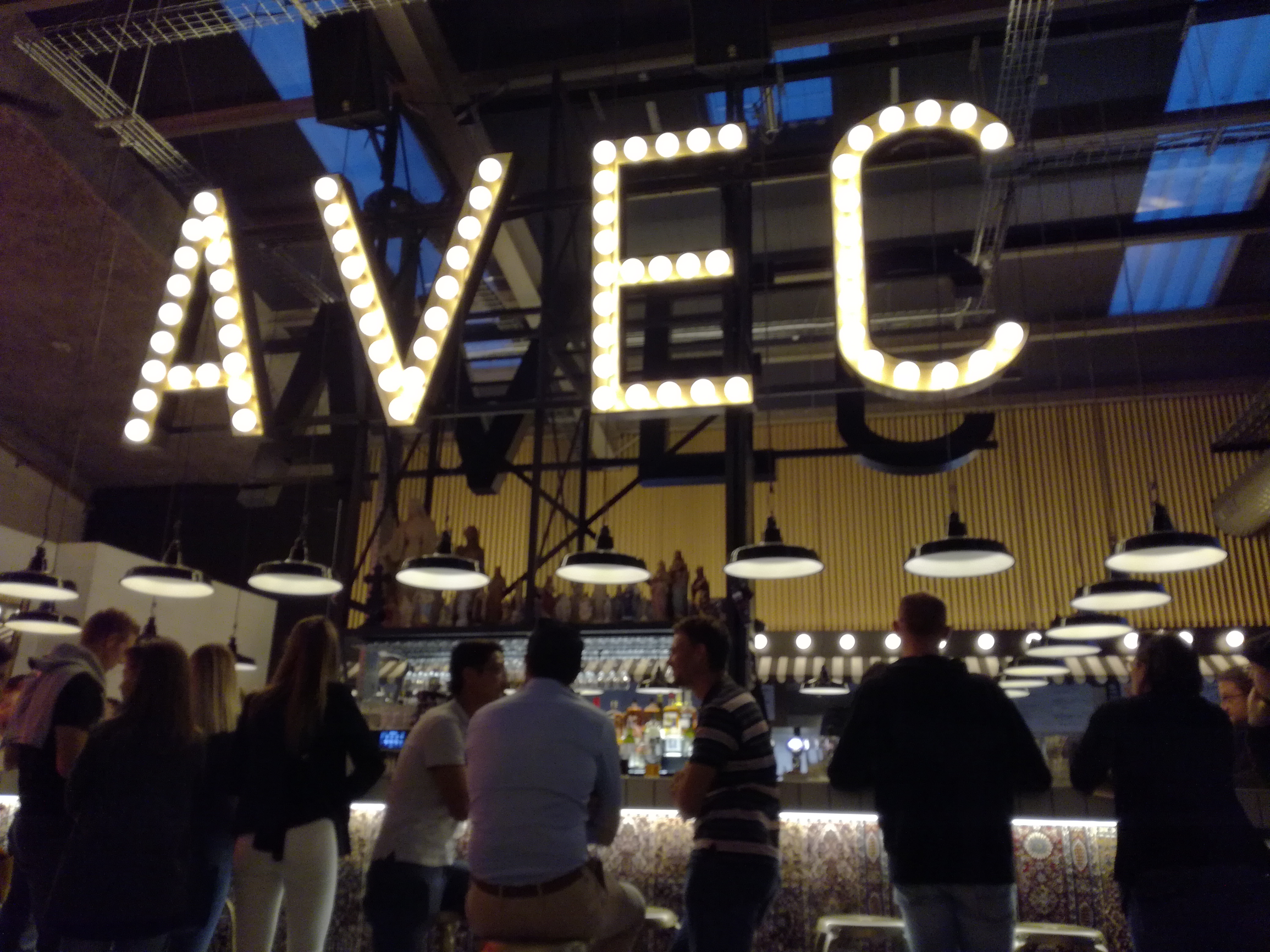 AVEC c'est avant tout un lieu chaleureux dans un endroit qui l'est moins, la zone du Sud-Est , où se mélangent les genres, les styles, les ages. L'esprit récupération et industriel prônent. Le service est souriant et efficace et la carte variée. Entrées à partager ou pas, différents burgers, viande de bœuf ou poisson, fromages, desserts et glaces. Jus de fruits frais et milk-shake . Un lieu à découvrir !