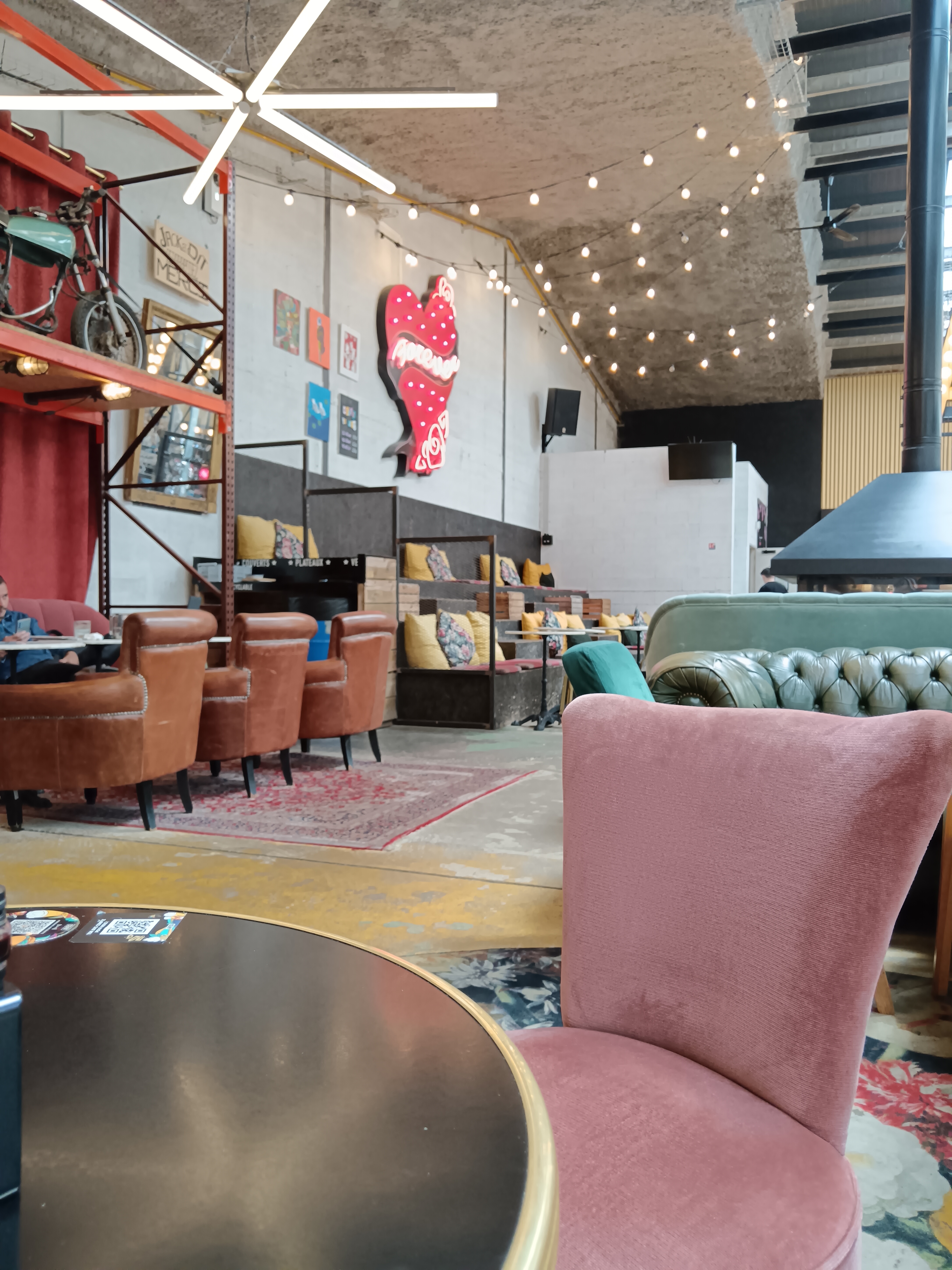 C'est the place to be, 100%dans les meilleurs concepts du moment. On mange, on boit, on rencontre des personnes de tous styles et tous âges... Déco art déco superbe, confortable... CONVIVIALITÉ ABSOLUE le tatoueur vous attend, le barbier aussi, c'est énorme !! Go go go !